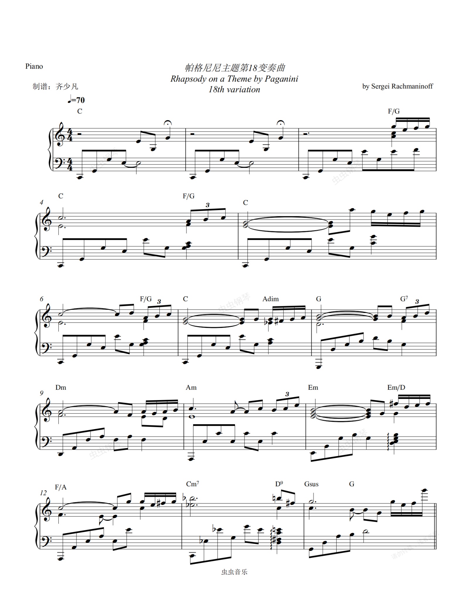 钢琴谱:帕格尼尼主题狂想曲第18变奏