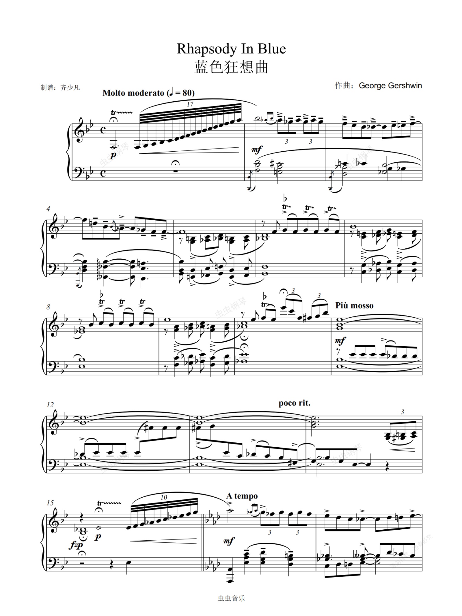 《蓝色狂想曲》( in Blue)是美国作曲家乔治·格什温()于1924年写给独奏钢琴及爵士乐团的乐曲,它融合了古典音乐的原理以及爵士的元素。