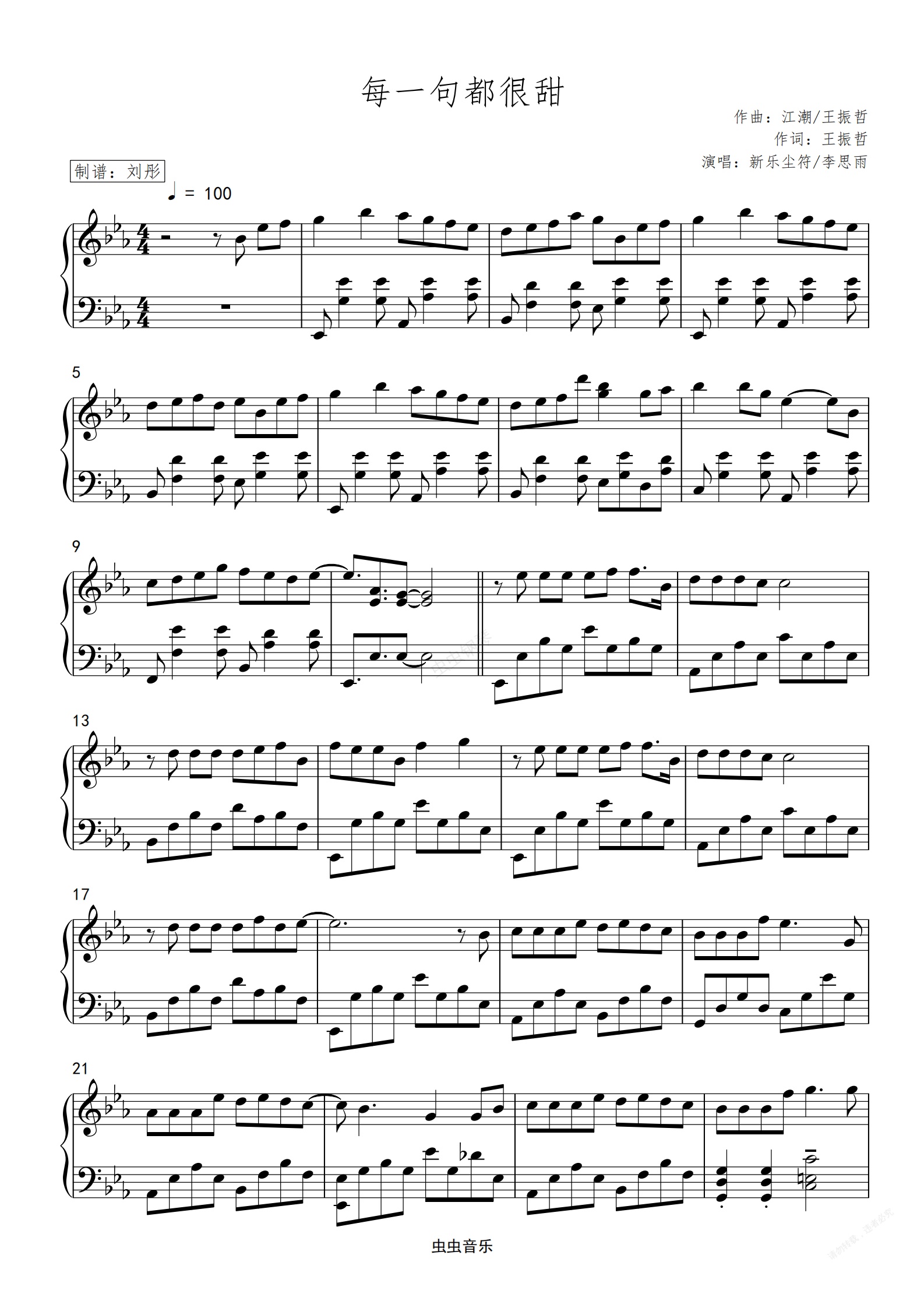钢琴谱:每一句都很甜 - 新乐尘符