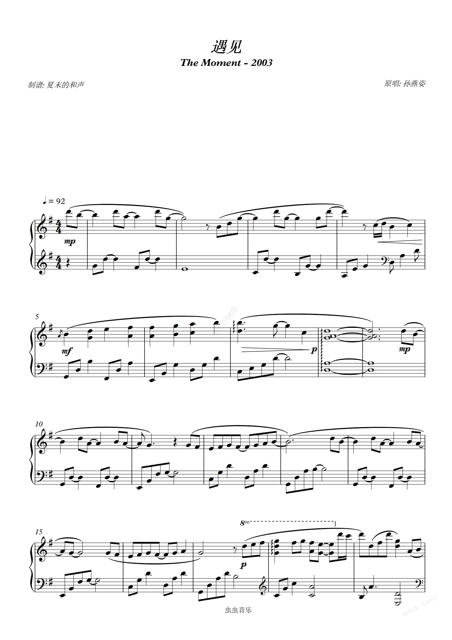钢琴谱:遇见 - 原版复刻 - G调 - 孙燕姿