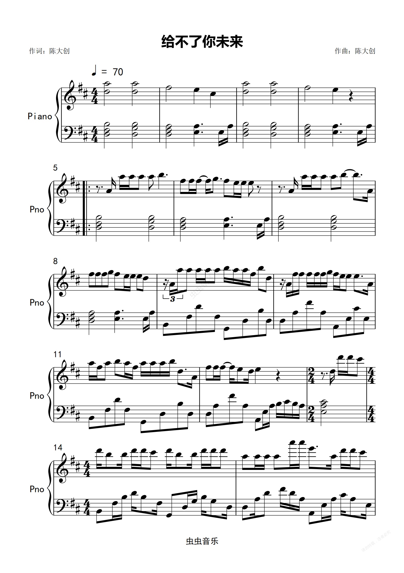 钢琴谱:给不了你未来 钢琴 抖音
