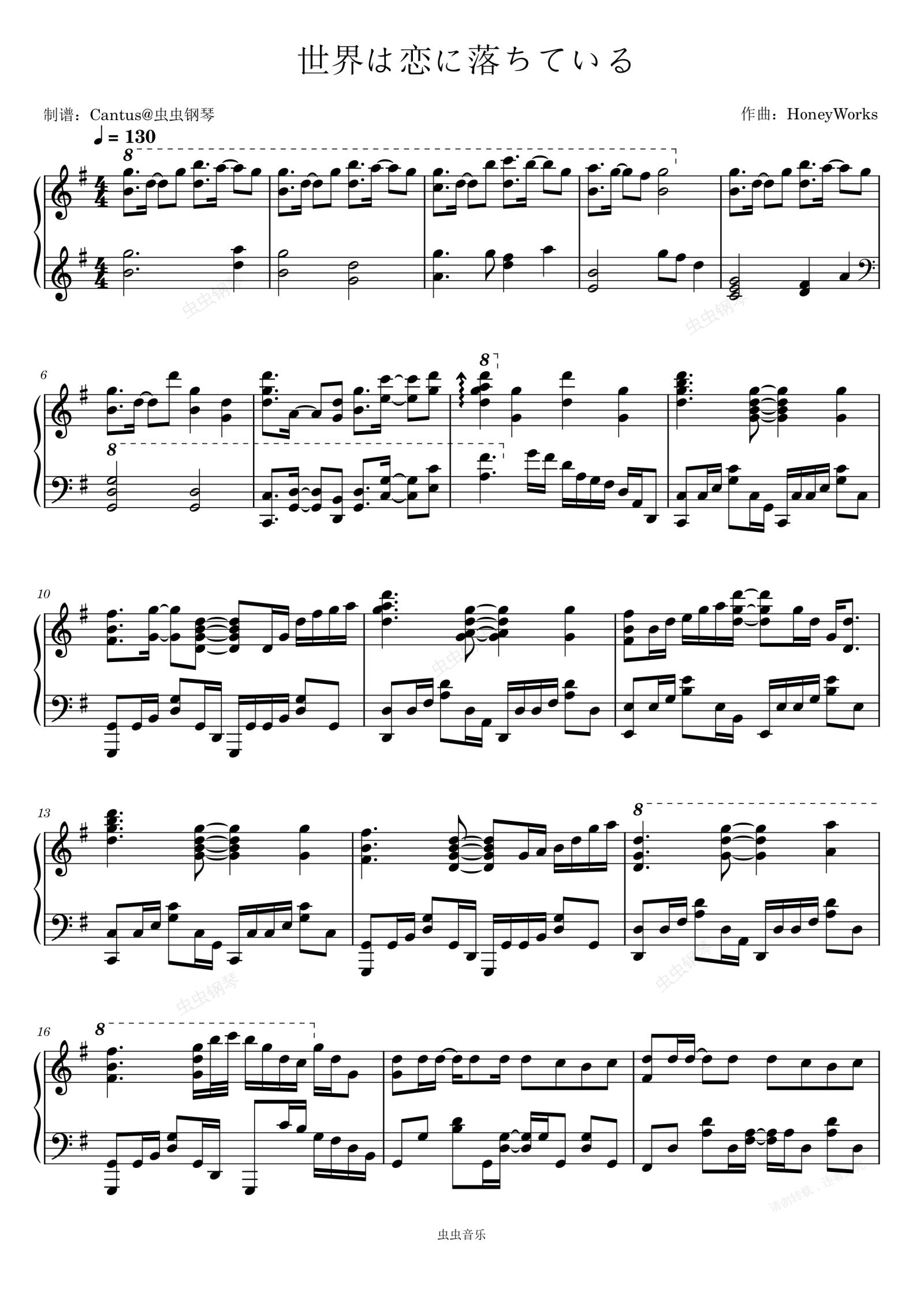 钢琴谱:世界は恋に落ちている(我的世界已坠入爱河)