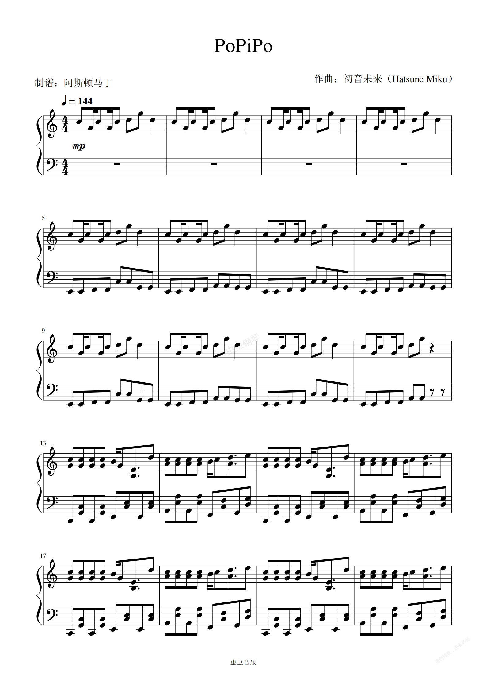 钢琴谱:《PoPiPo/蔬菜汁》-初音未来(Hatsune Miku)