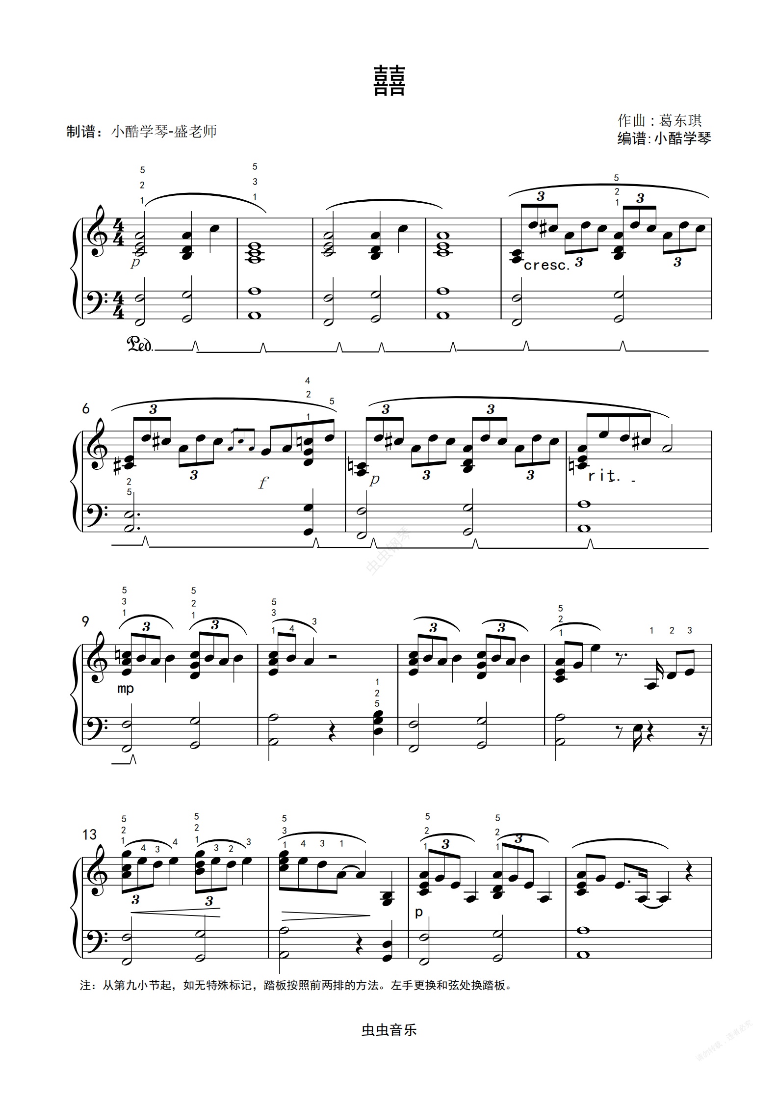 钢琴谱:《囍》极致还原版(指法+踏板+视频演示——保姆版)
