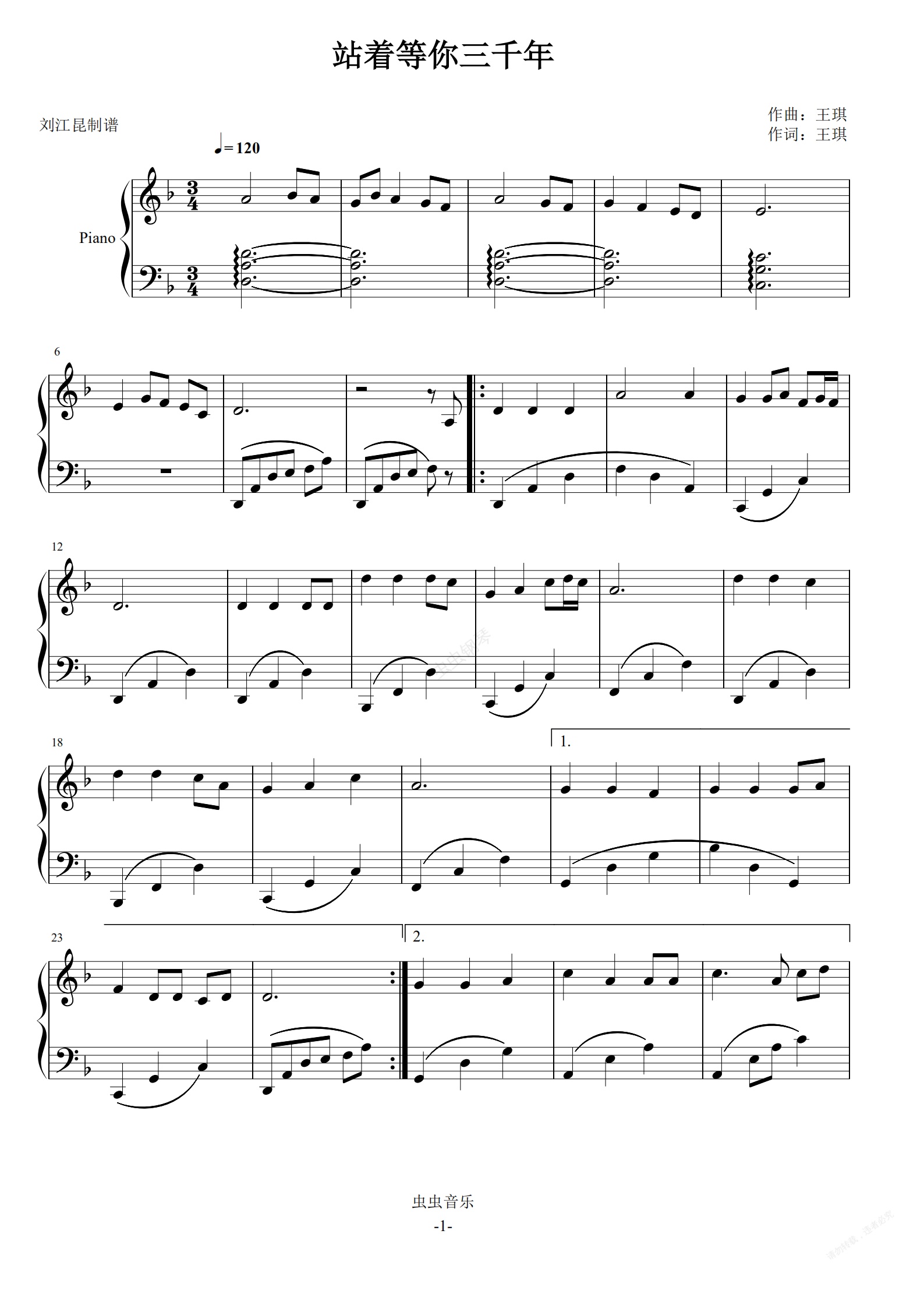 钢琴谱:站着等你三千年(原调+原曲和声+精编)