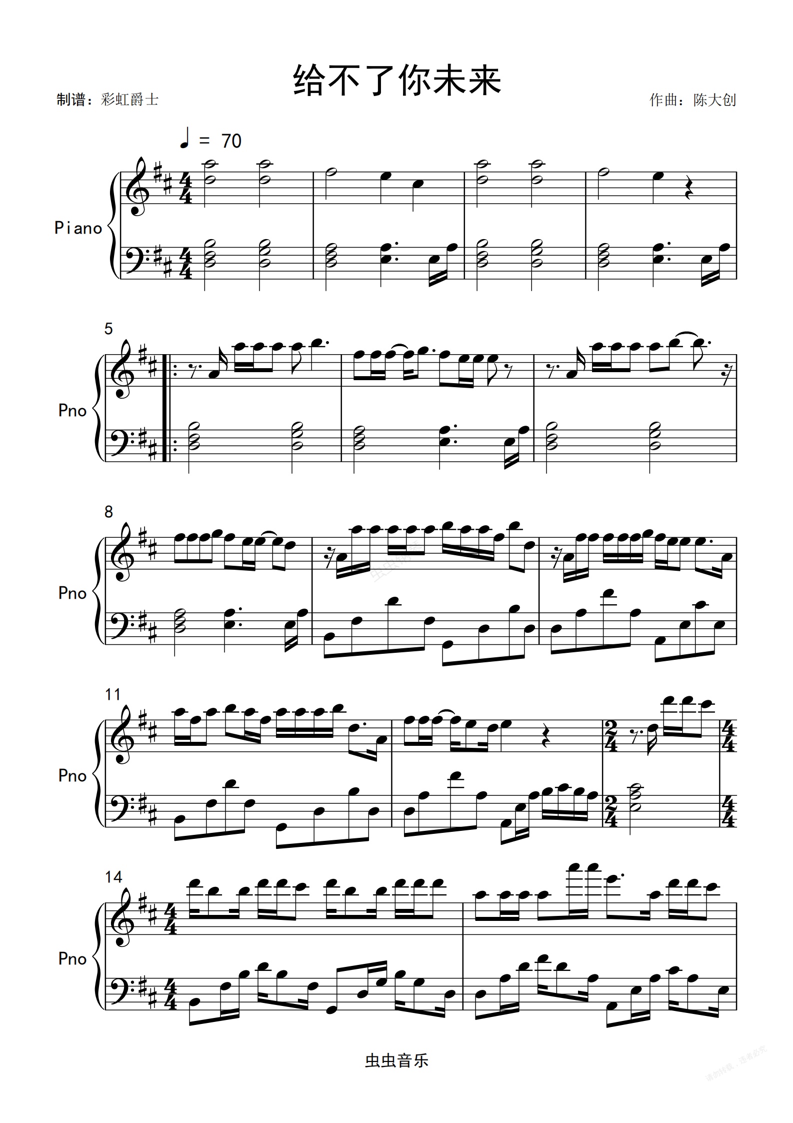 钢琴谱:给不了你未来 简单版 抖音热歌