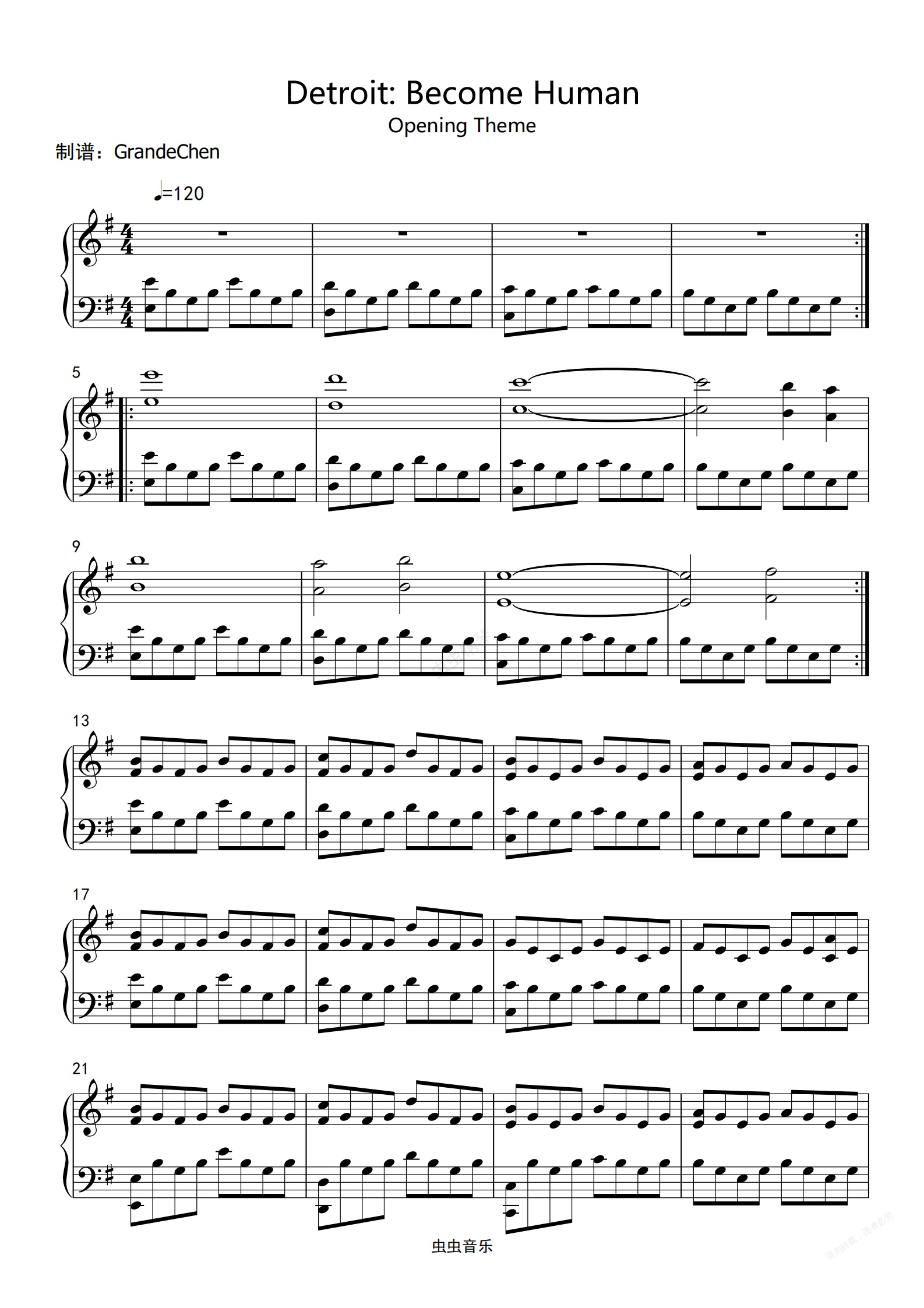 钢琴谱:底特律:成为人类 开场曲独奏版