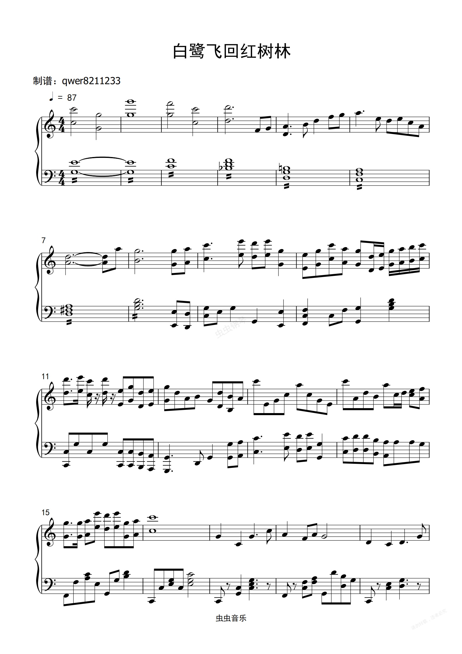 钢琴谱:白鹭飞回红树林