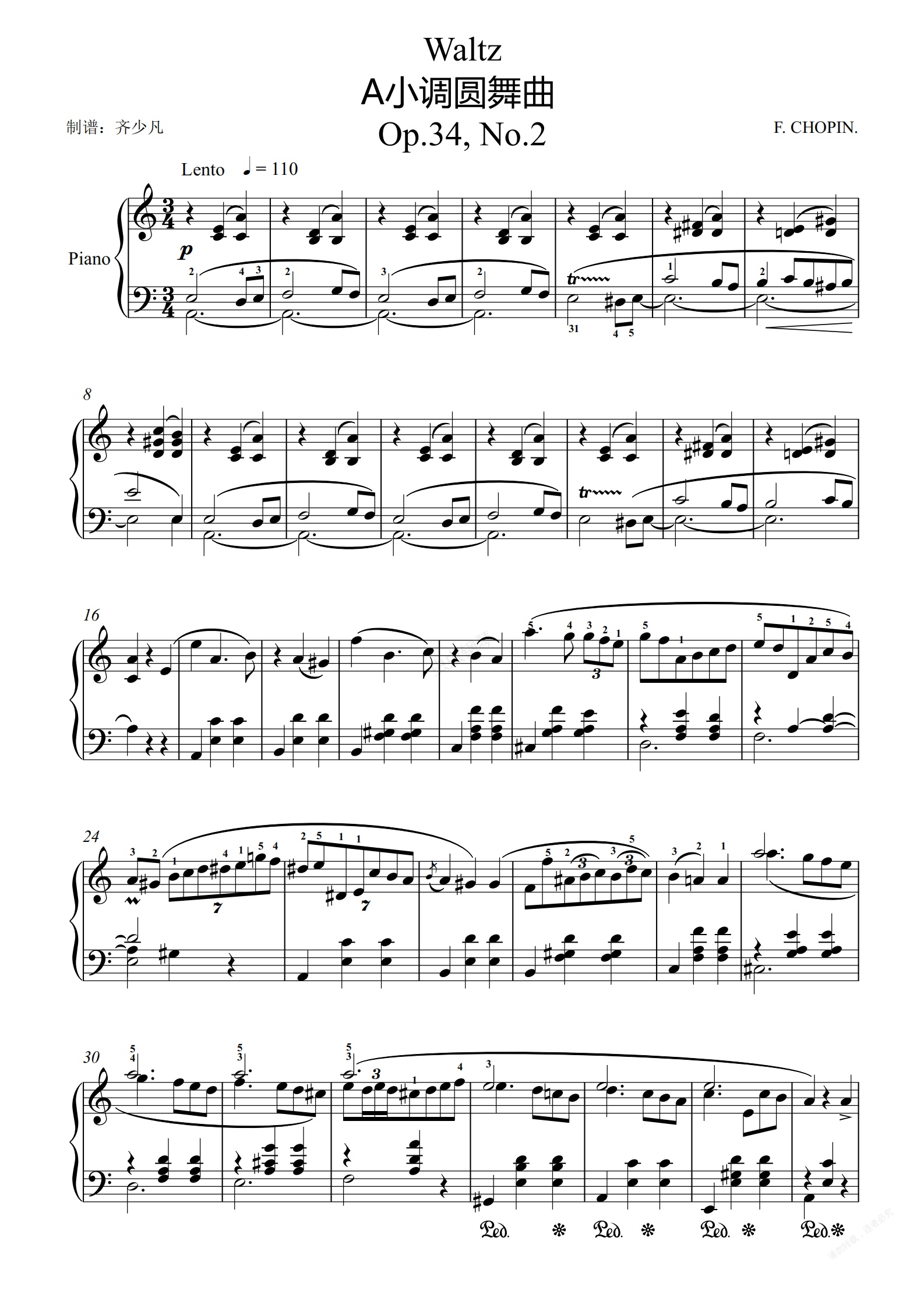 钢琴谱:肖邦-A小调圆舞曲Op.34 No.2