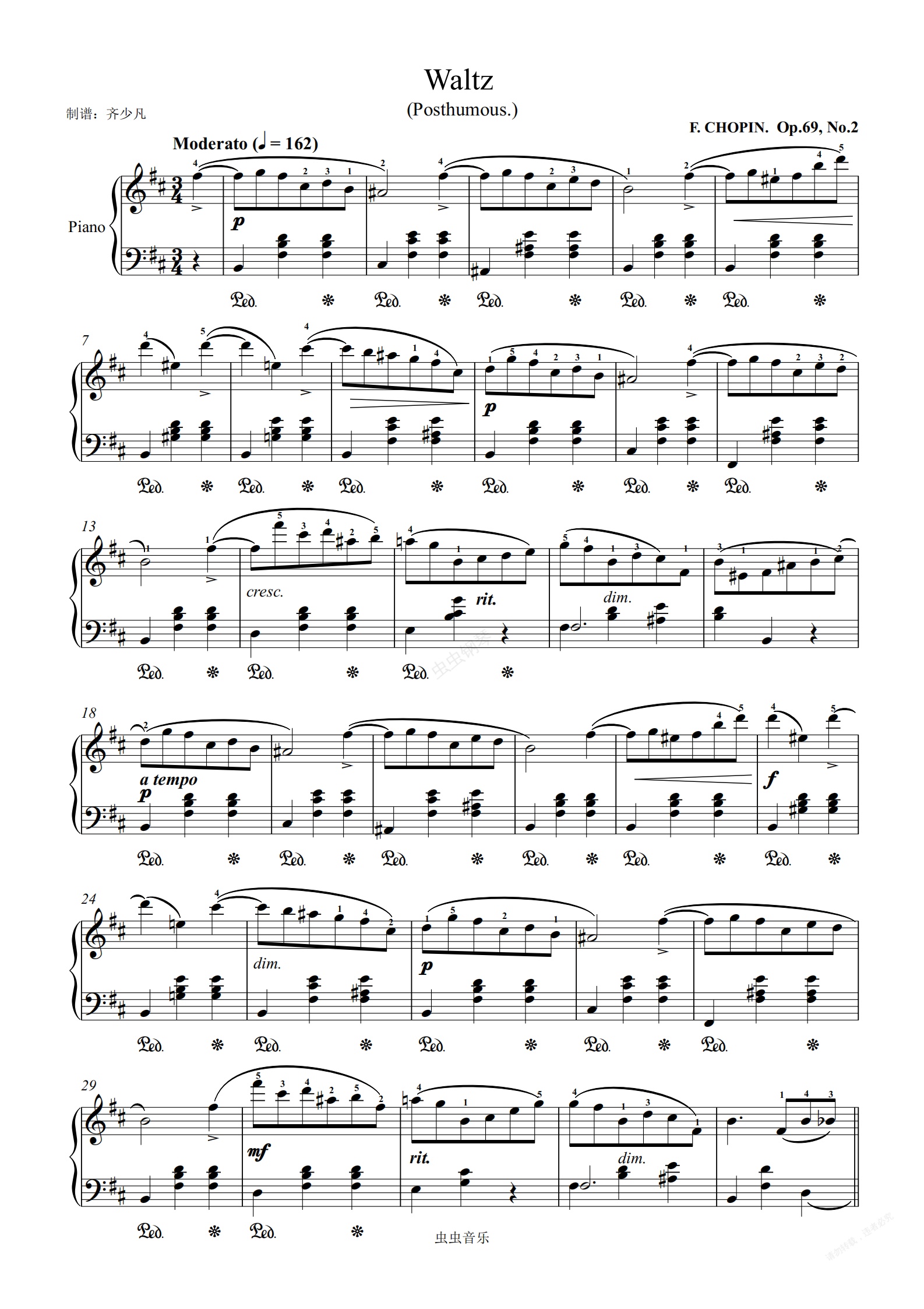 钢琴谱:肖邦-b小调圆舞曲op69.no2