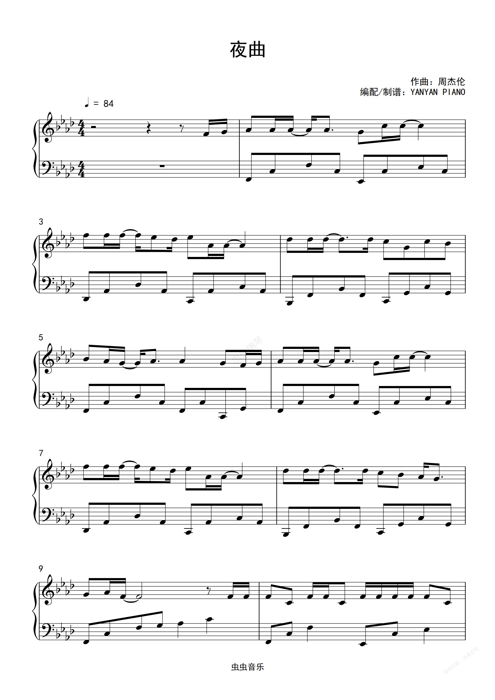 钢琴谱:周杰伦【夜曲】钢琴独奏原调简版