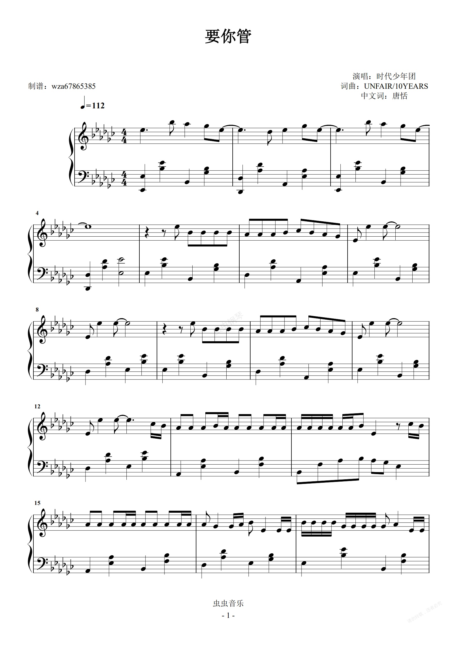 钢琴谱:要你管
