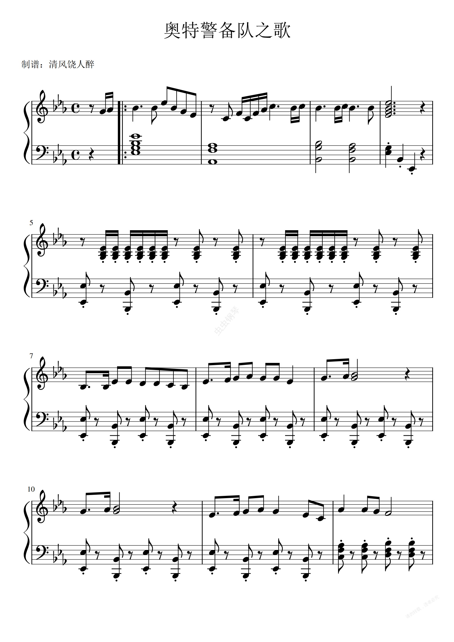 钢琴谱:奥特警备队之歌
