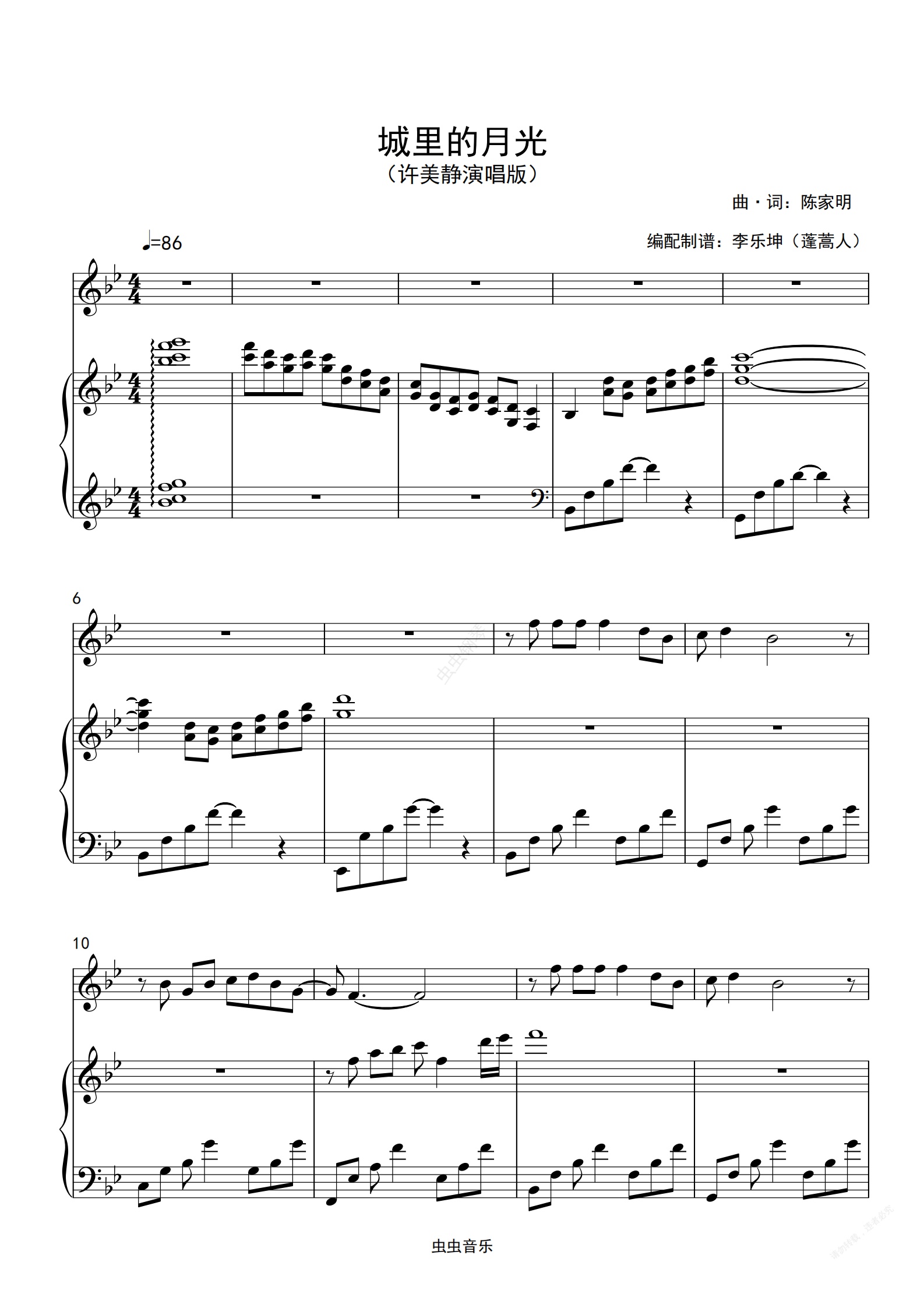 钢琴谱:城里的月光(许美静)bB调