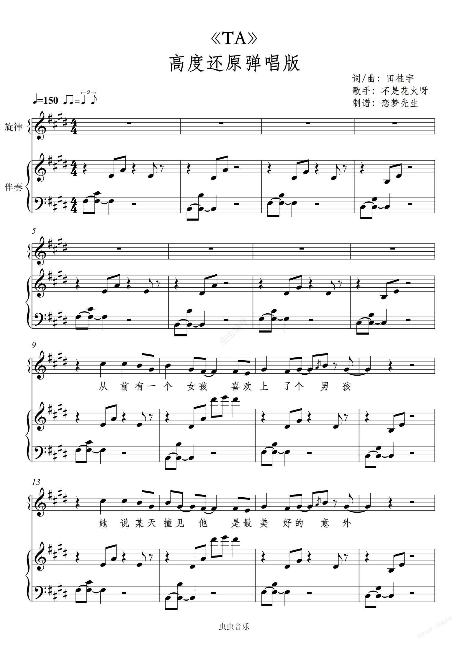钢琴谱:《TA》