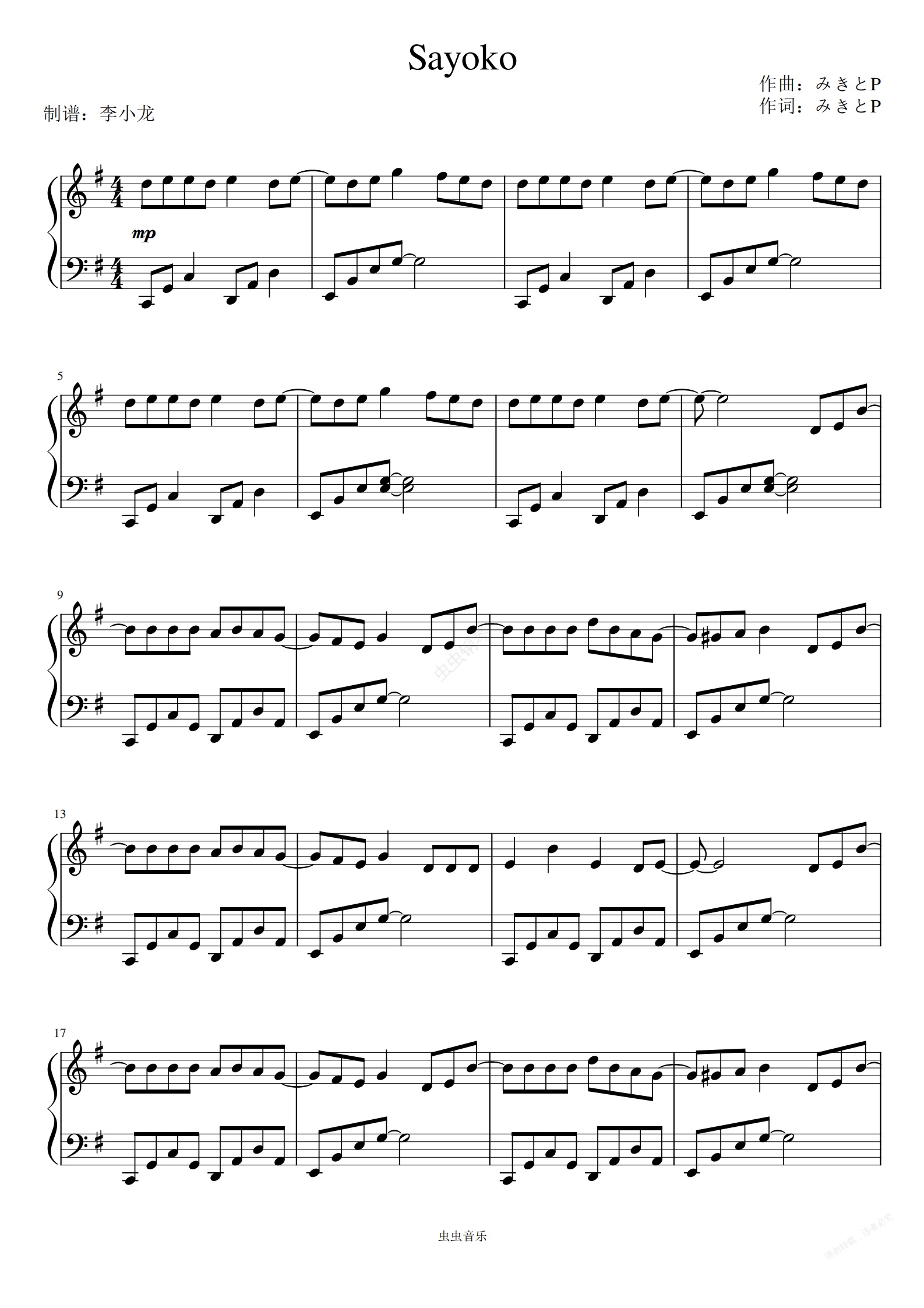 钢琴谱:《Sayoko/小夜子》-初音未来(Hatsune Miku)