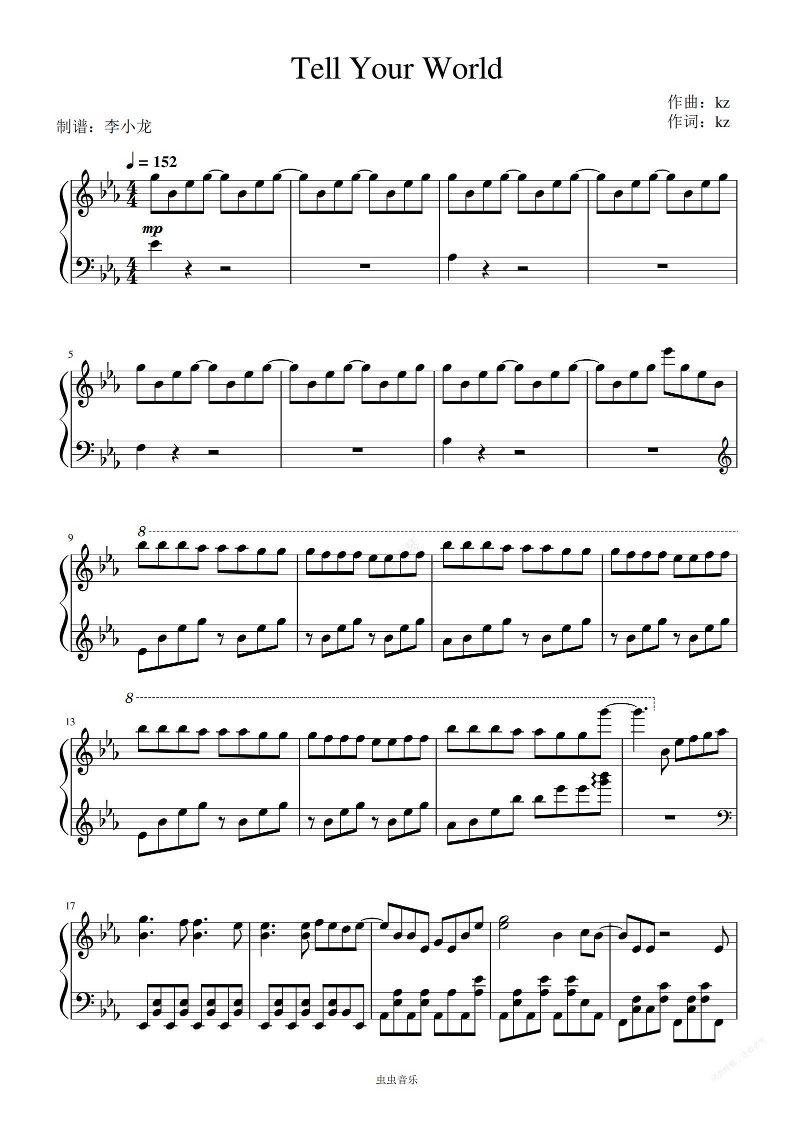 钢琴谱:《Tell Your World》-初音未来(Hatsune Miku)