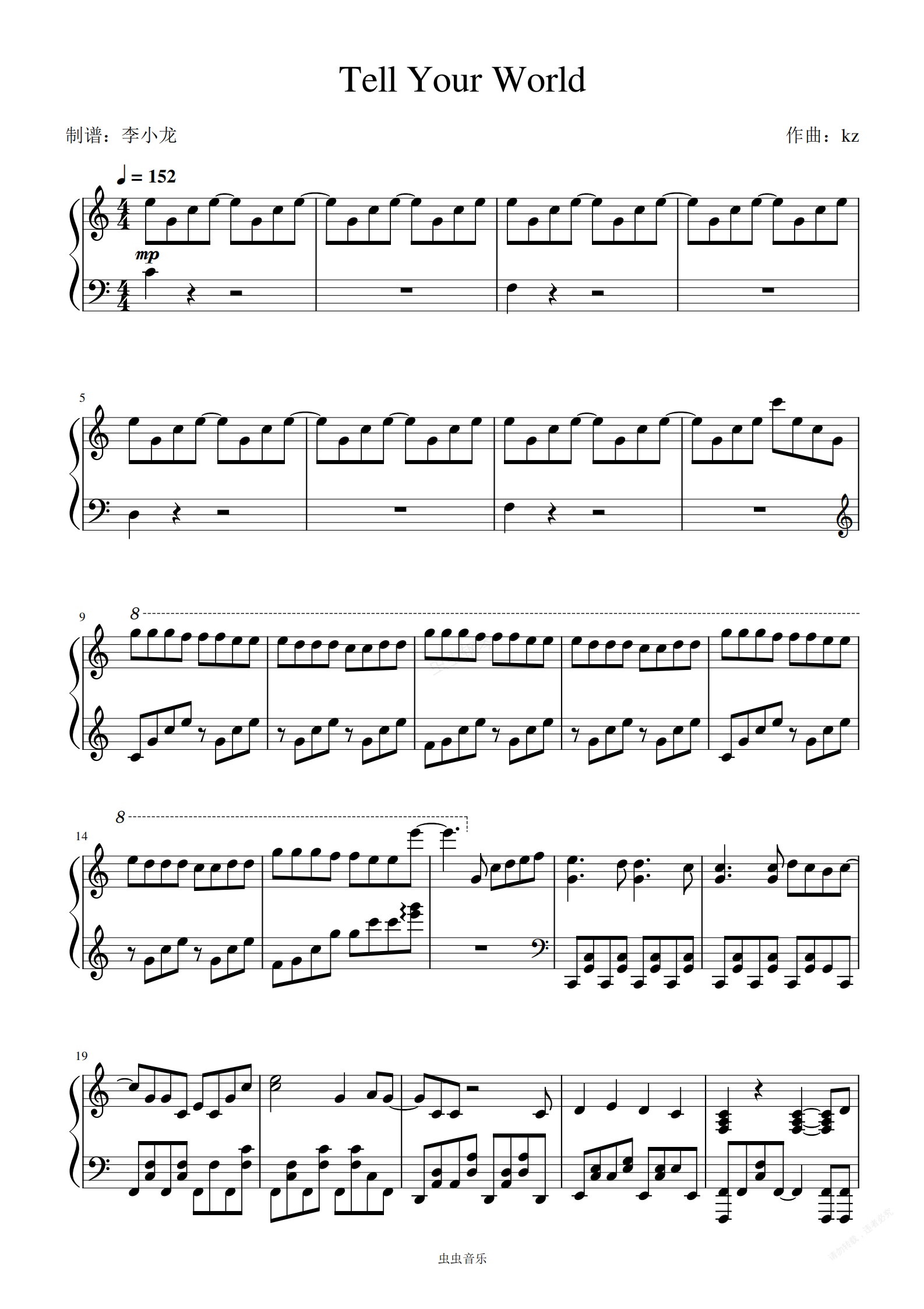 钢琴谱:《Tell Your World》C调-初音未来(Hatsune Miku)