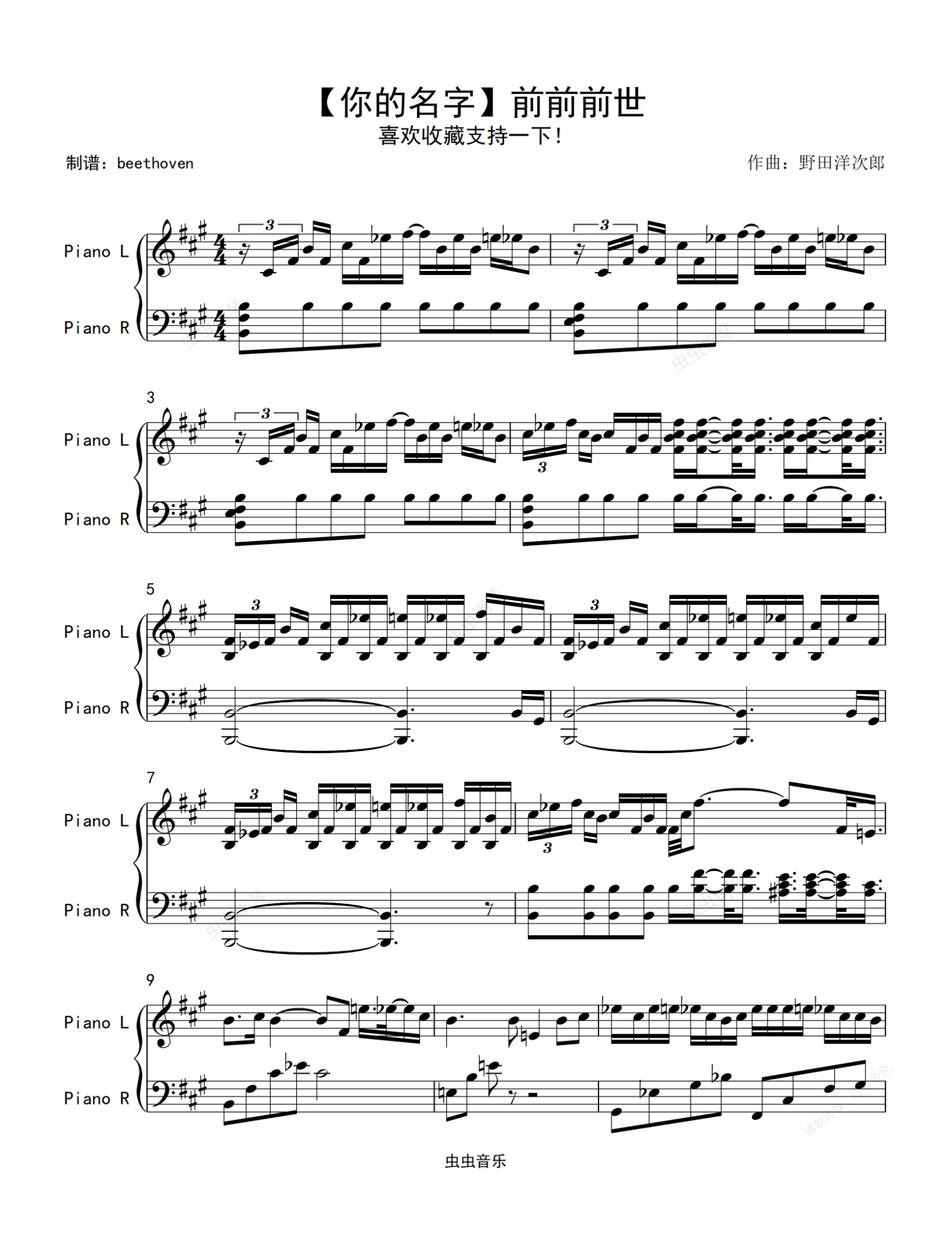 钢琴谱:前前前世(你的名字)独奏