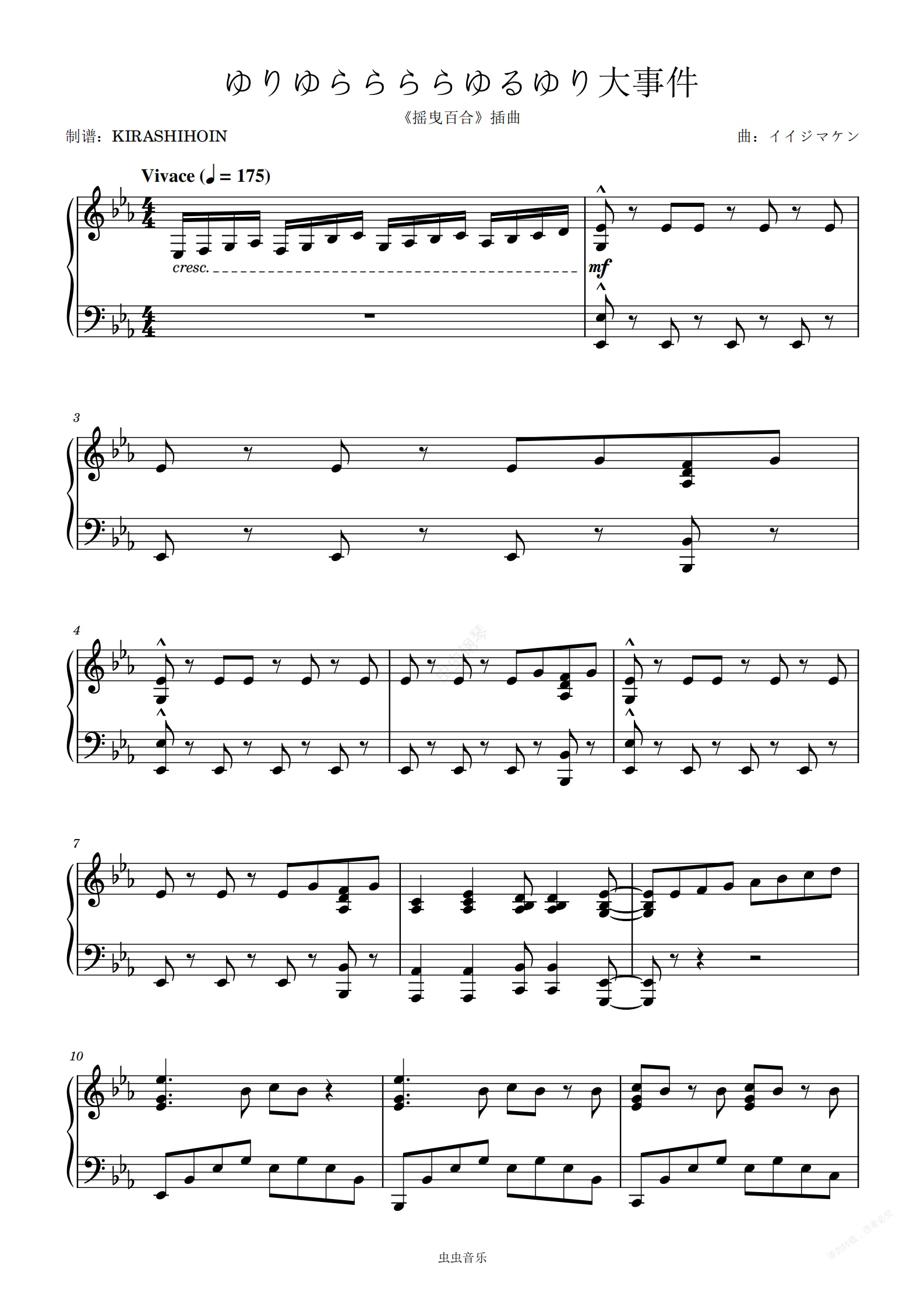 钢琴谱:ゆりゆららららゆるゆり大事件/百合摇晃晃晃晃 摇曳百合大事件(《摇曳百合》插曲)