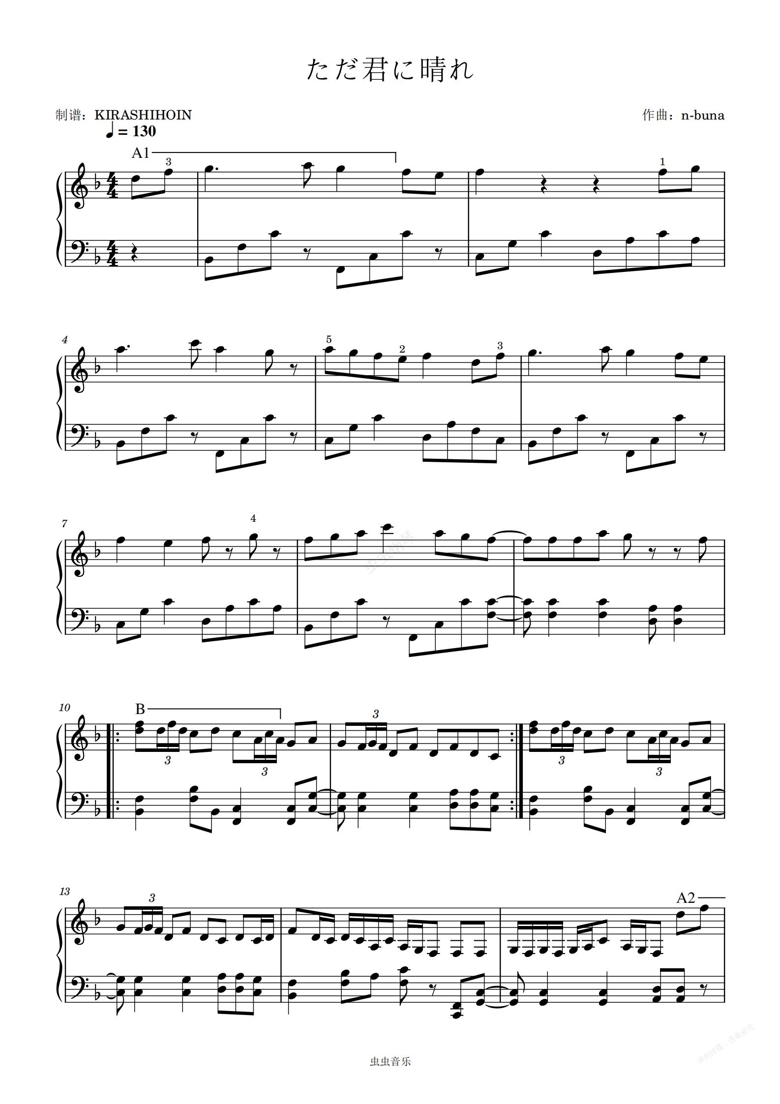 钢琴谱:ただ君に晴れ