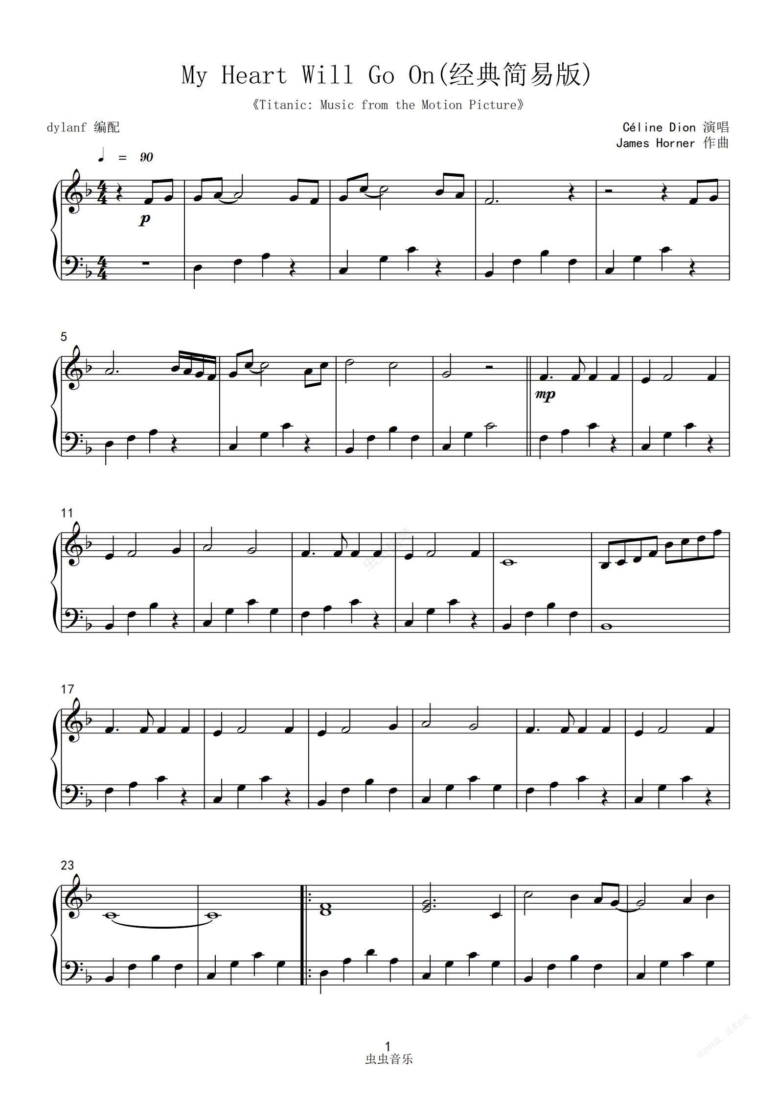 钢琴谱:My Heart Will Go On(经典简易版)泰坦尼克号