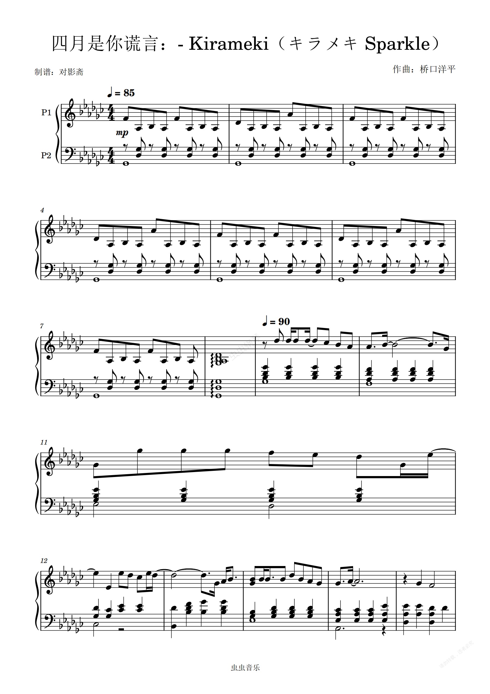 钢琴谱:四月是你谎言:Kirameki(キラメキ_Sparkle)