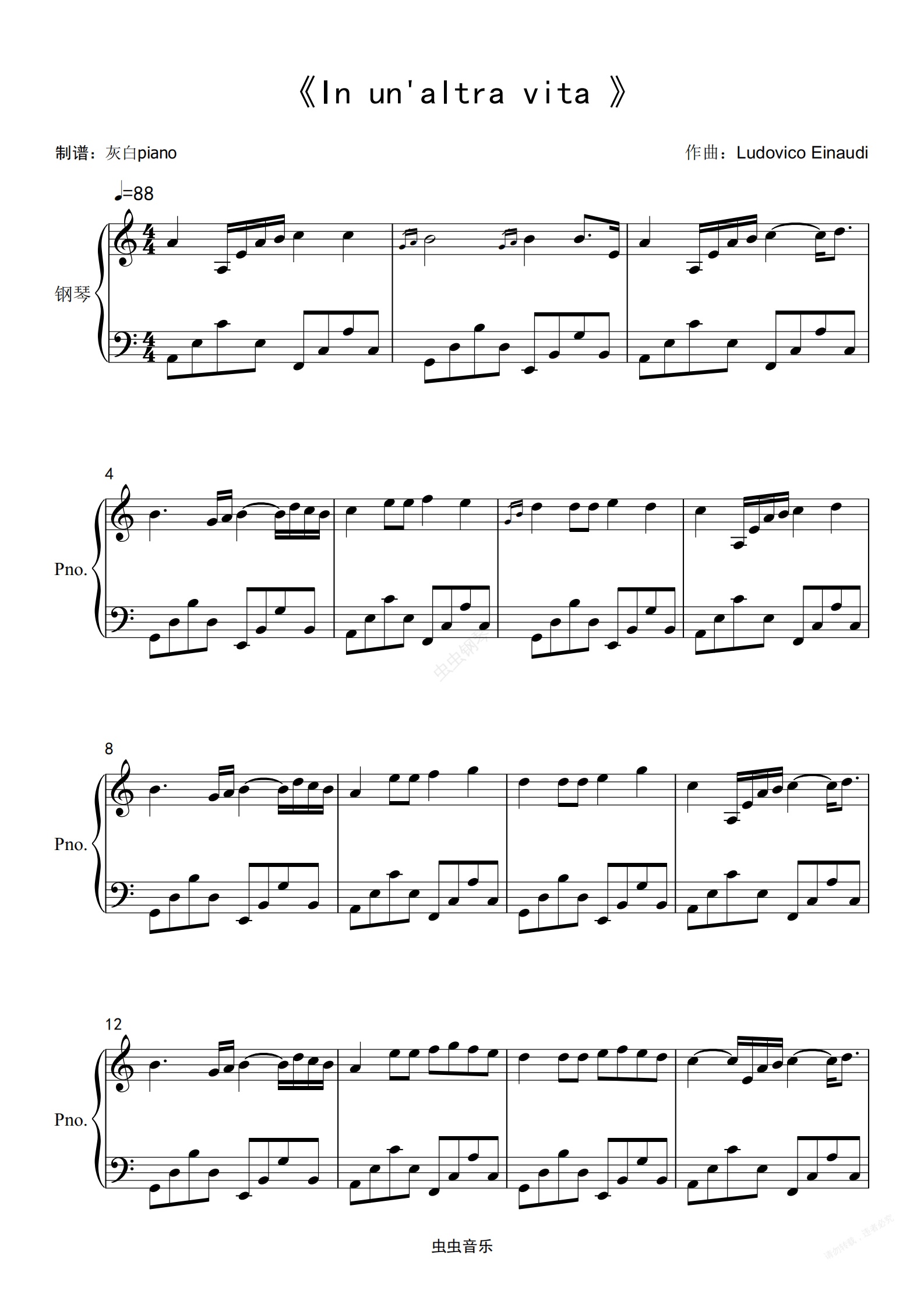 钢琴谱:In un'altra vita (在另一种生活中) 原版-灰白