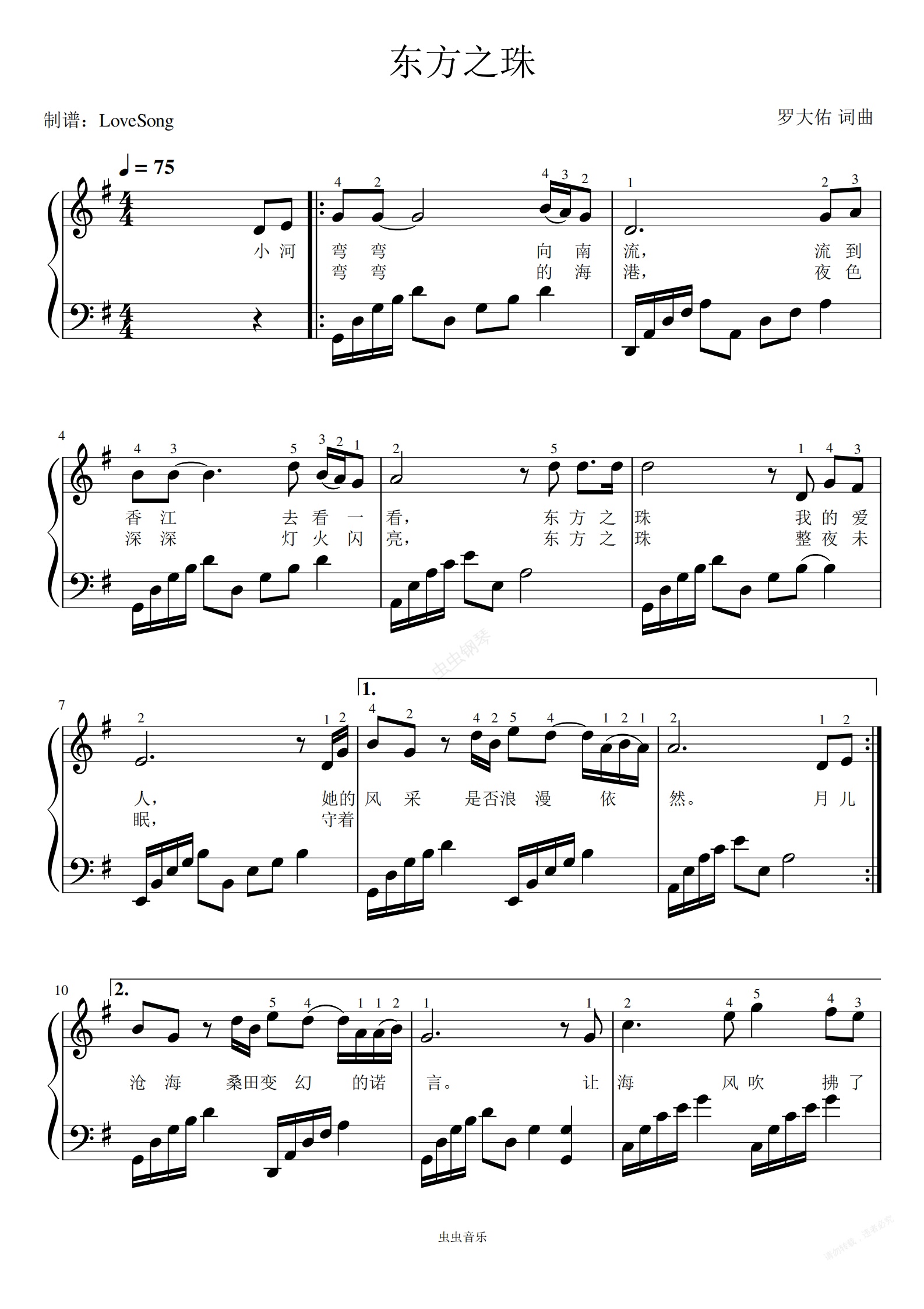 钢琴谱:东方之珠 简易动听 带指法