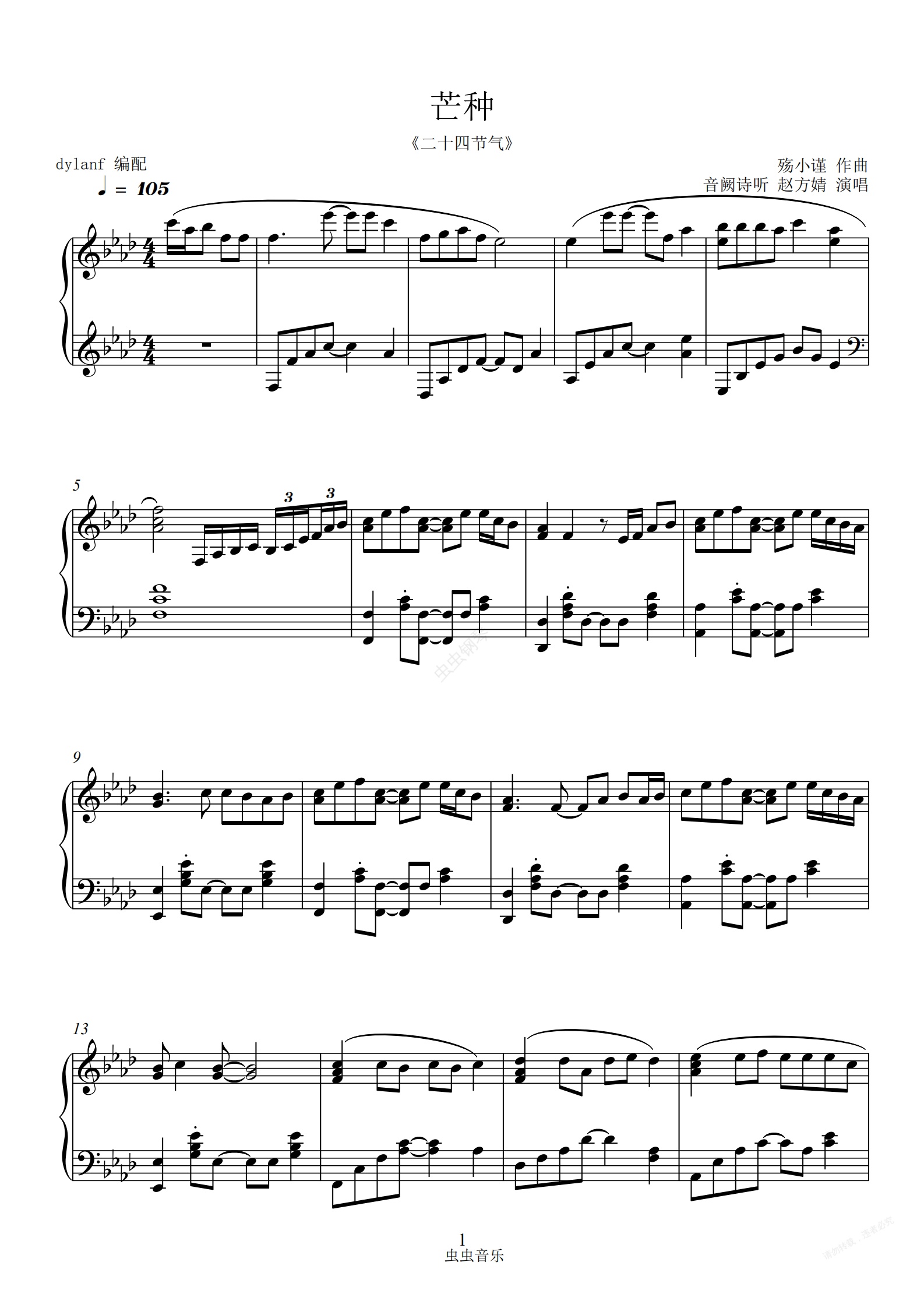 钢琴谱:芒种(高还原版)好听好弹 音阙诗听 赵方婧