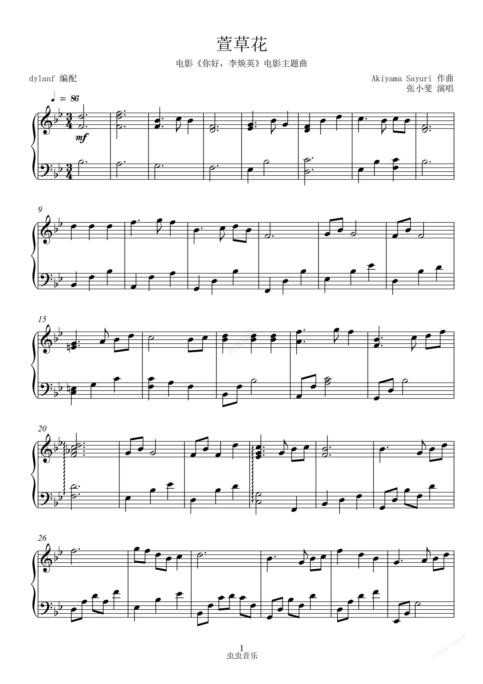 钢琴谱:萱草花 好听易弹《你好,李焕英》主题曲