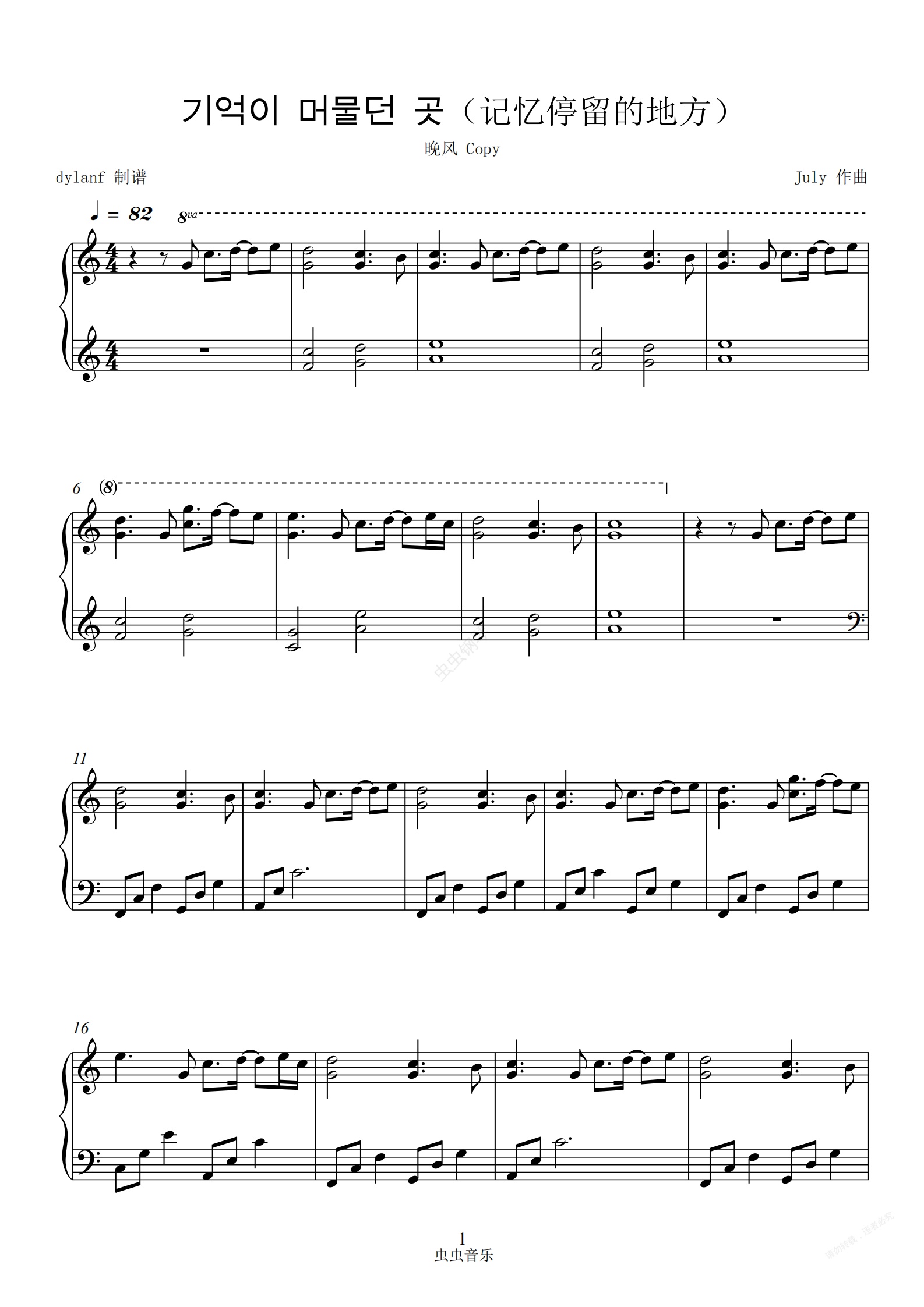 钢琴谱:晚风(记忆停留的地方-July)Copy