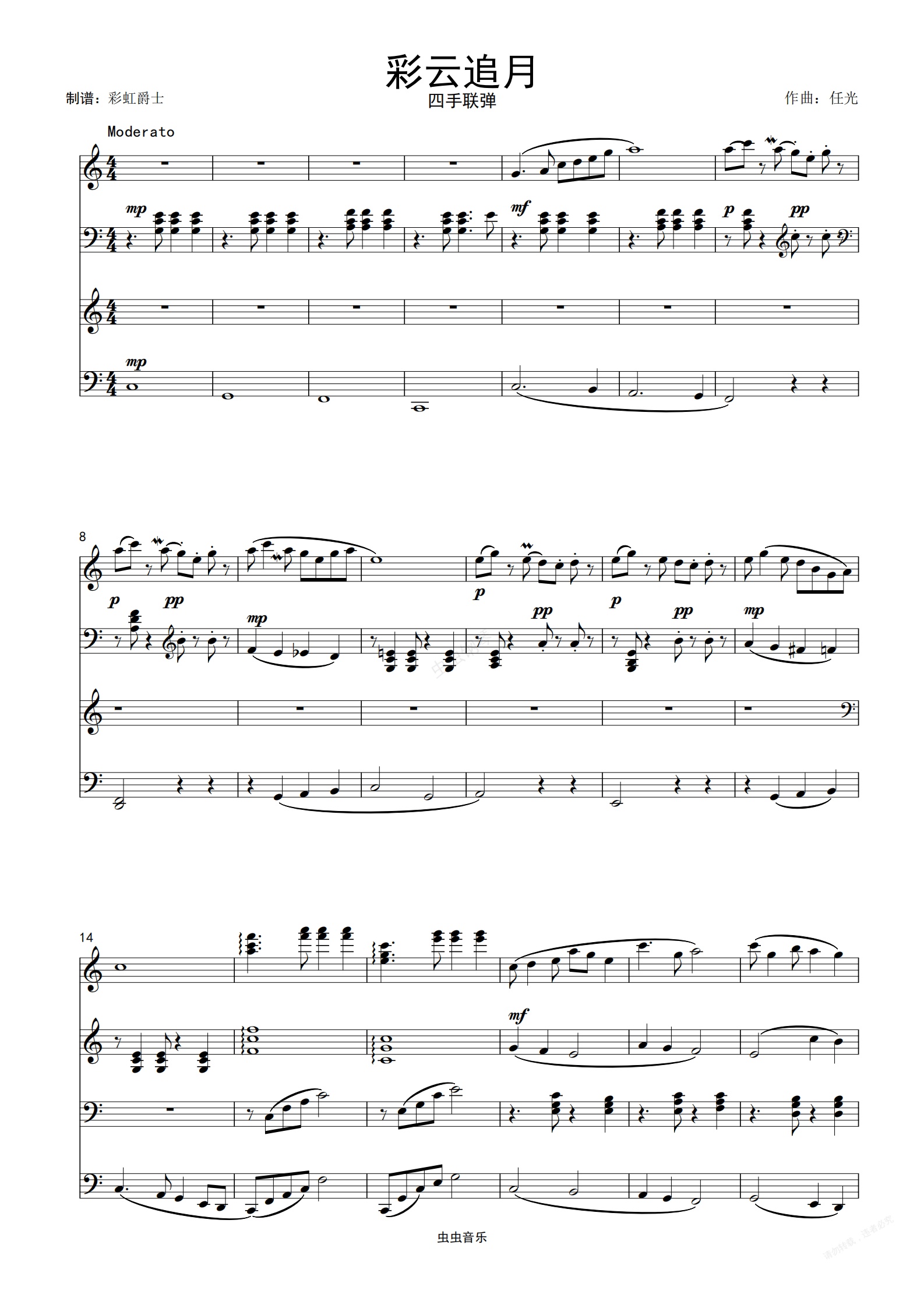 钢琴谱:彩云醉月 四手联弹 四手连弹