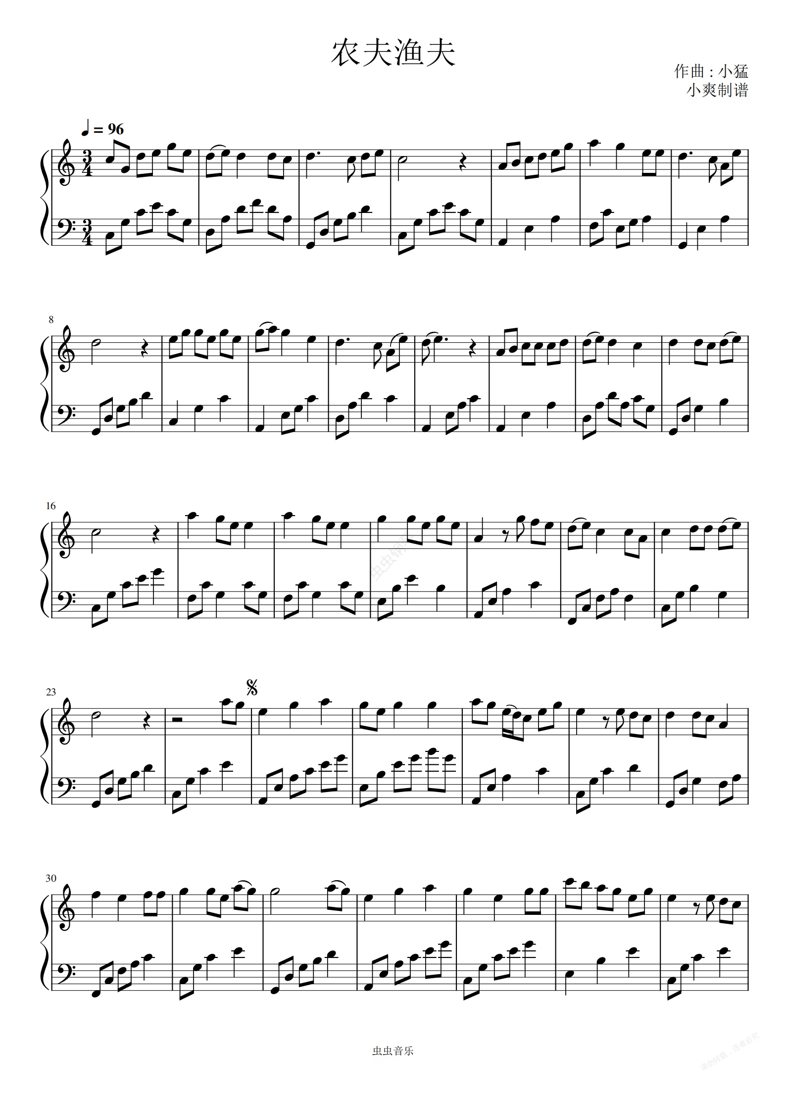 钢琴谱:农夫渔夫