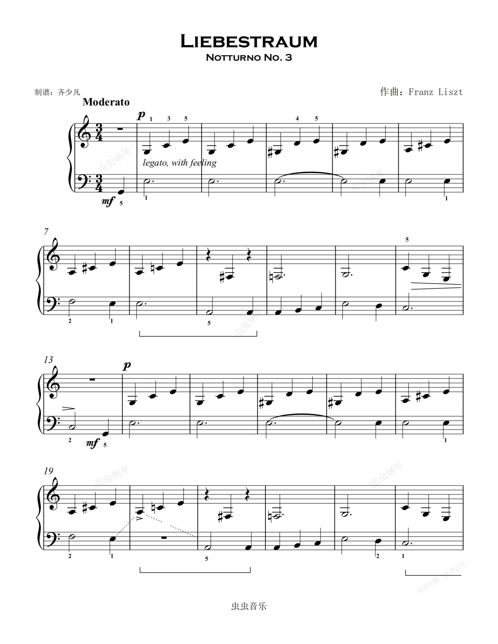 李斯特把自己的三首歌曲改写为三首钢琴曲,题作《爱之梦》(,S541)。原来的歌词,分别作为钢琴曲的题诗。第一、二首的题诗是德国诗人乌兰德(,1788-1862)的《崇高的爱》(Hohe Liebe, S.307)和《幸福的死》( war ich, S.308);第三首的题诗是弗莱里格拉特的《爱吧》(O lieb so lang du, S.298) [1] 。三首《爱之梦》都是夜曲体裁,特别著名的是其中的第三首降A大调,原来的歌曲作于1845年,是一首用钢琴“演唱”的抒情歌曲,音乐深情婉转,抒写弗莱里格拉特诗中的意境。