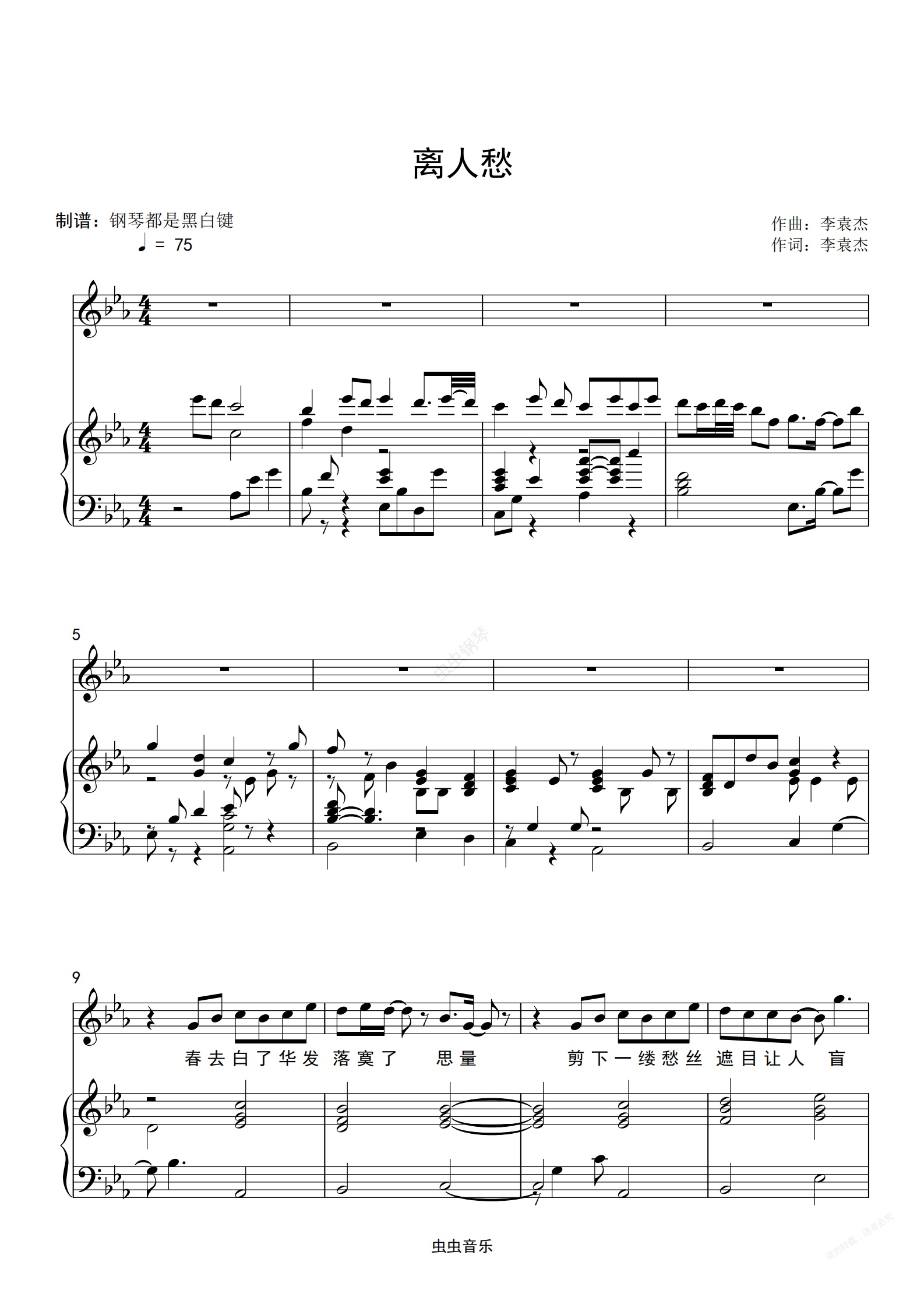 钢琴谱:离人愁 扒谱原版钢琴 弹唱版带歌词