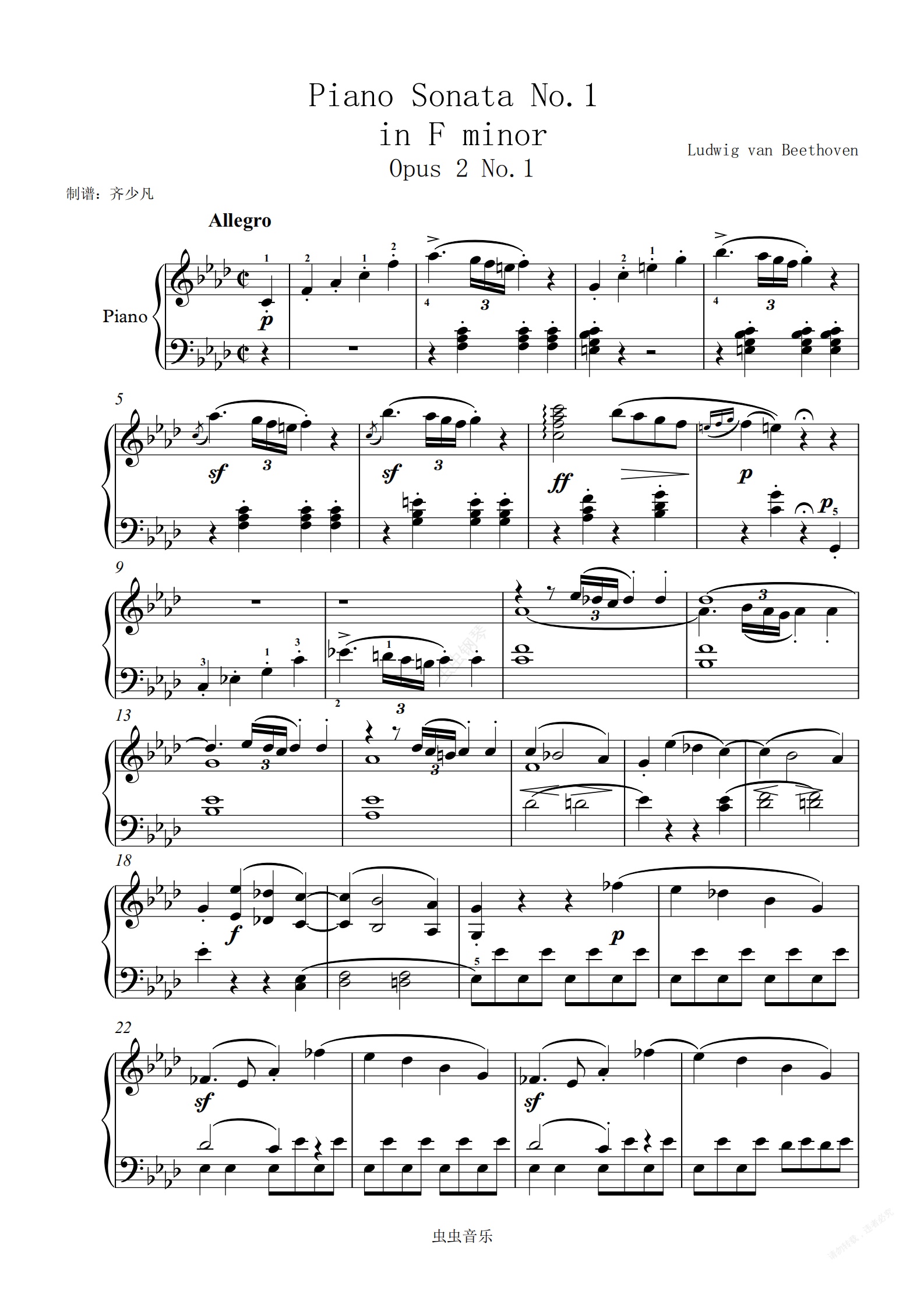 钢琴谱:第一钢琴奏鸣曲F小调-贝多芬钢琴奏鸣曲全集计划
