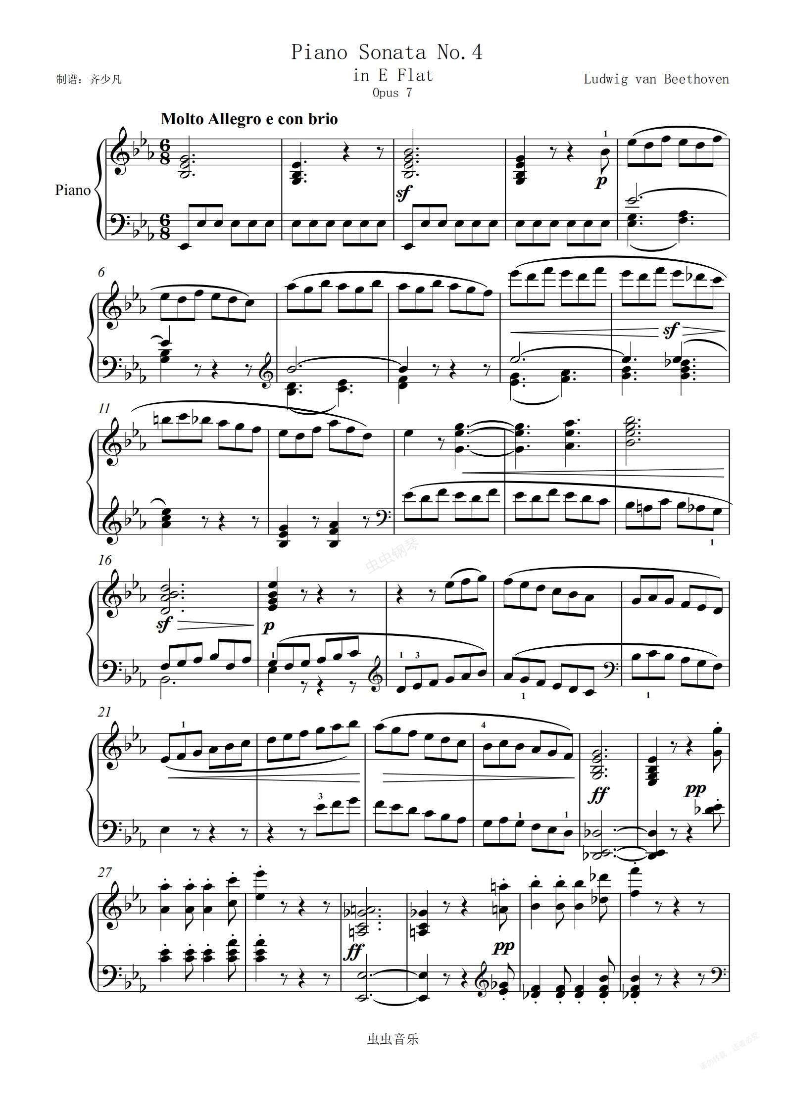 钢琴谱:第四钢琴奏鸣曲降E大调-贝多芬钢琴奏鸣曲全集计划