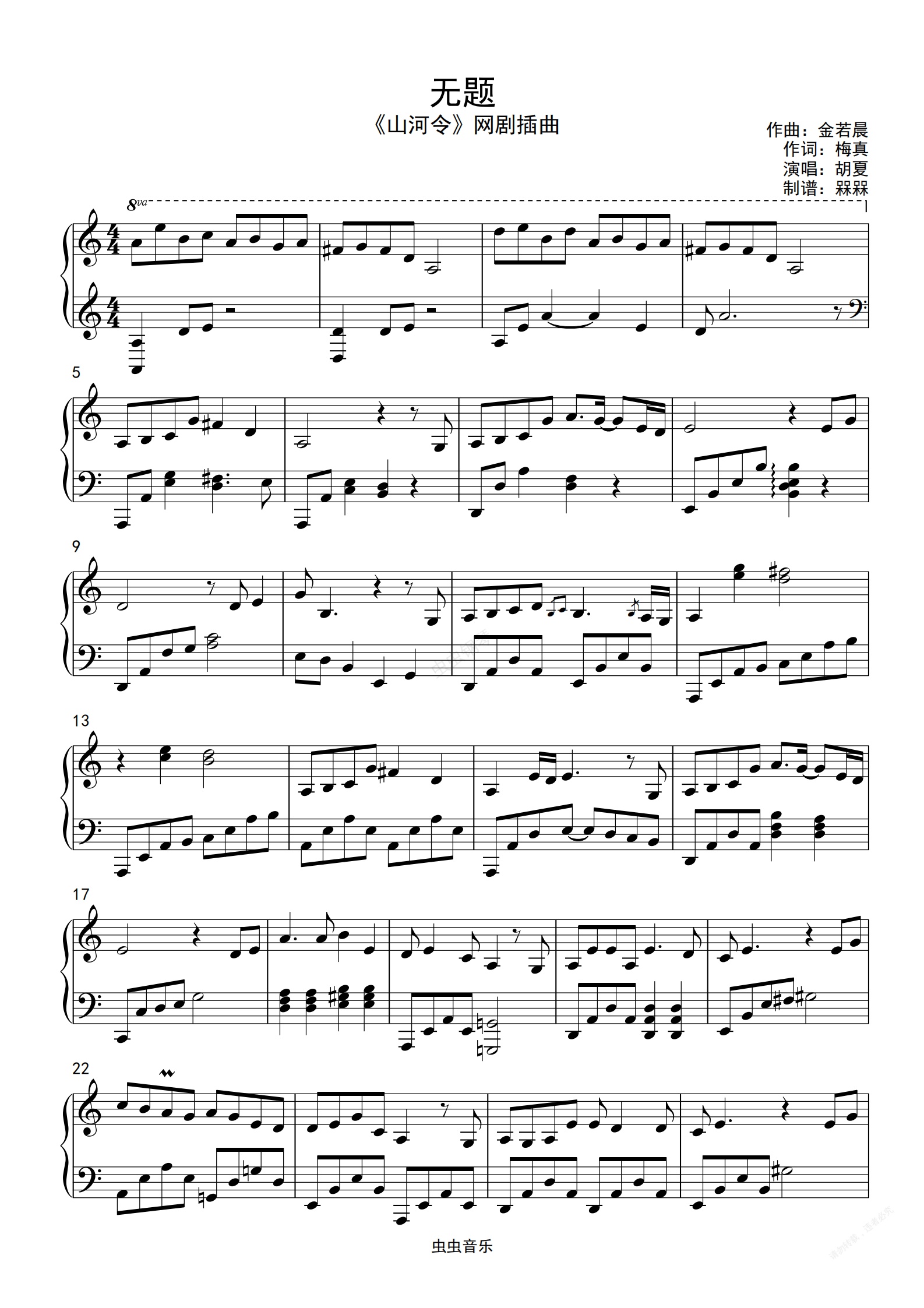 钢琴谱:山河令《无题》简易无调号 唯美独奏版