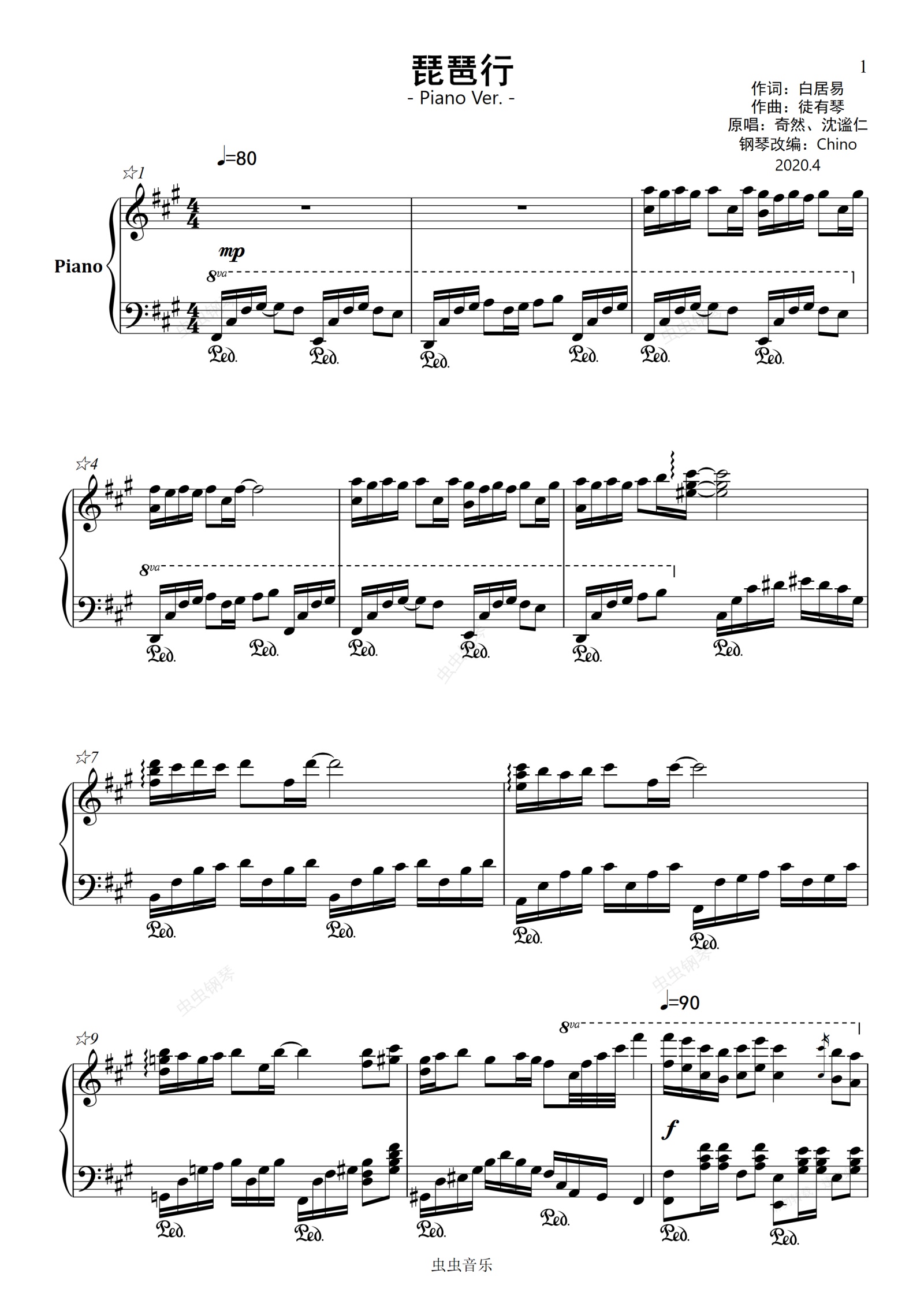 钢琴谱:【钢琴改编】琵琶行——奇然、沈谧仁 高考必背篇目