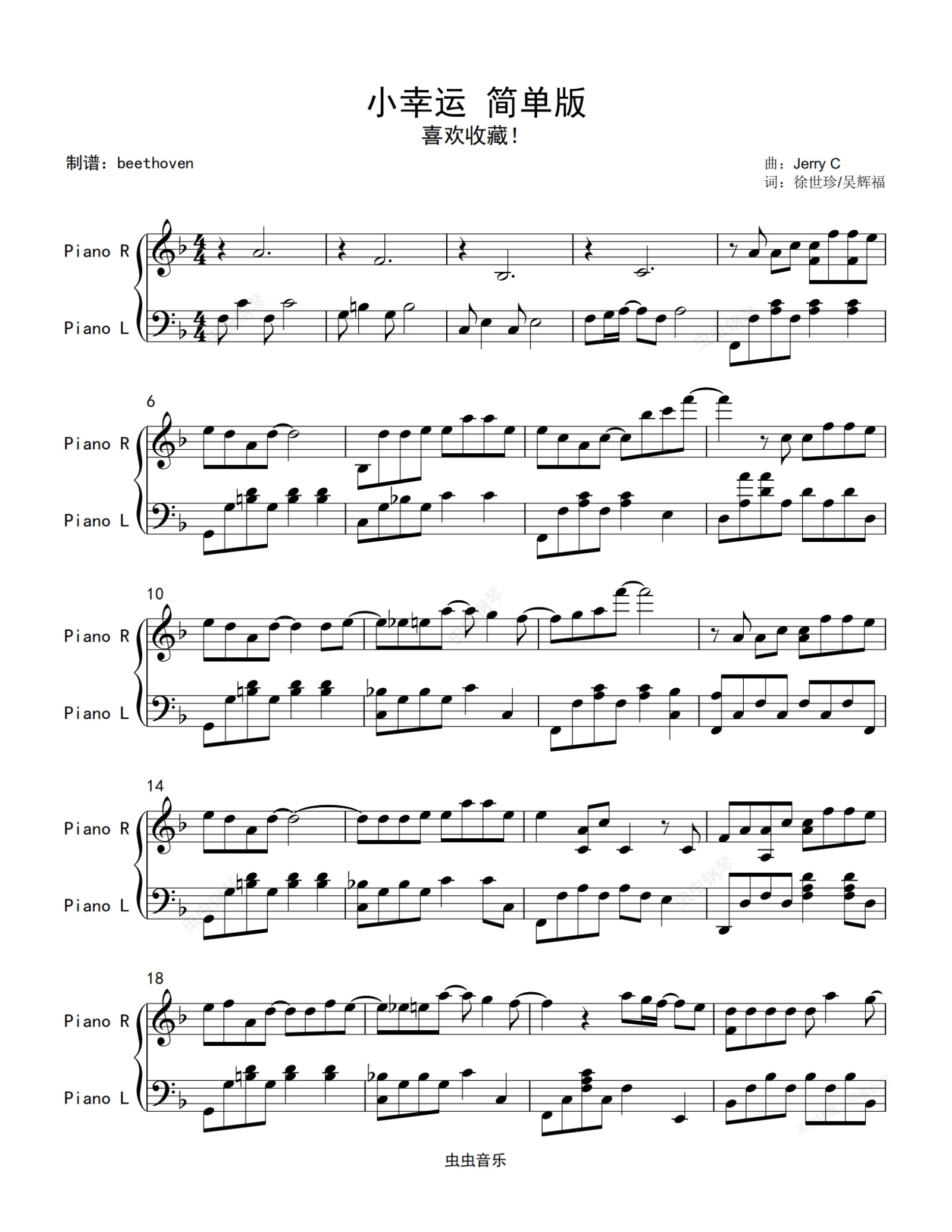钢琴谱:小幸运_钢琴独奏原版
