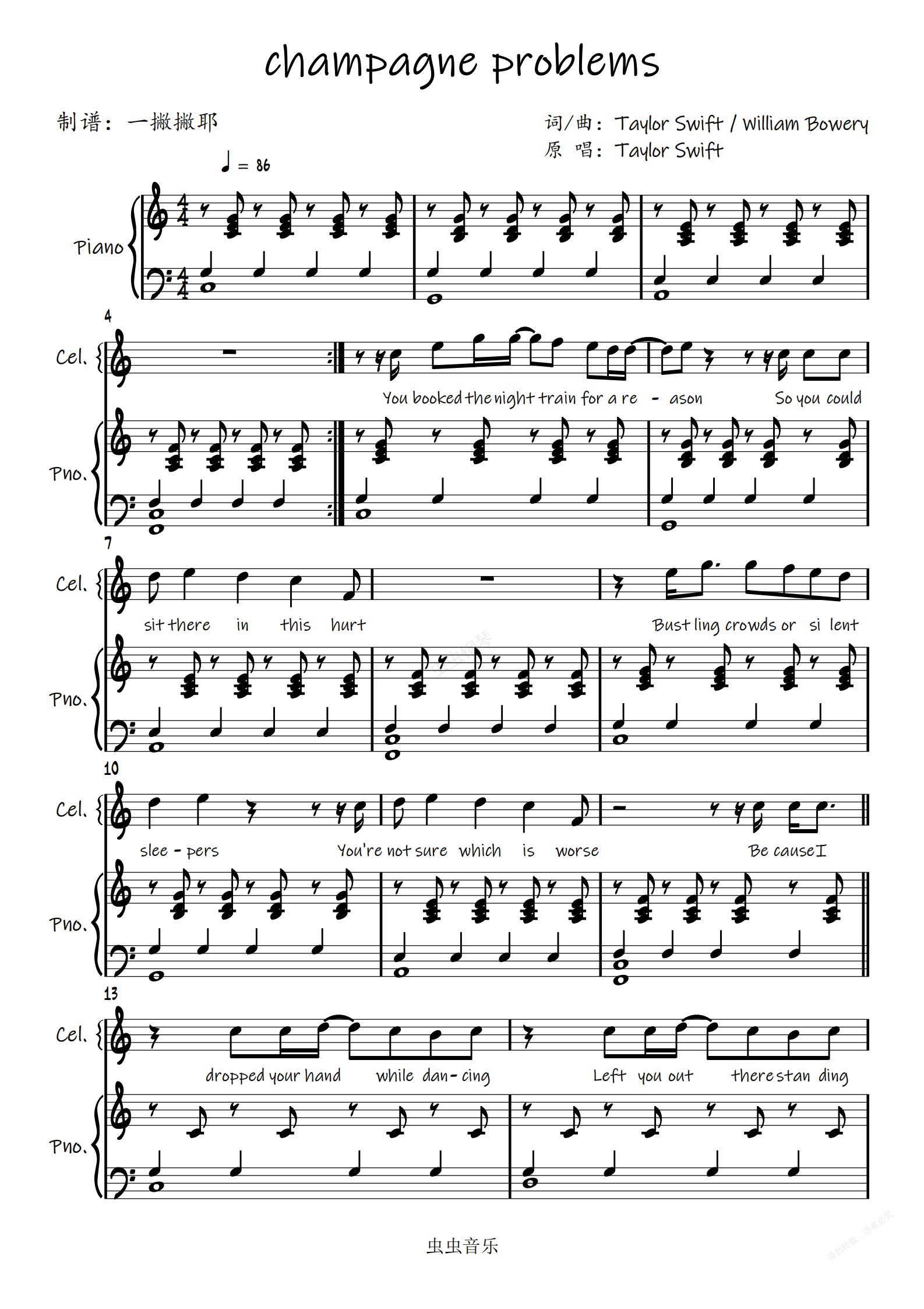 钢琴谱:【完整版弹唱谱】champagne problems香槟问题-Taylor Swift泰勒·斯威夫特∣霉霉evermore「一撇撇耶」