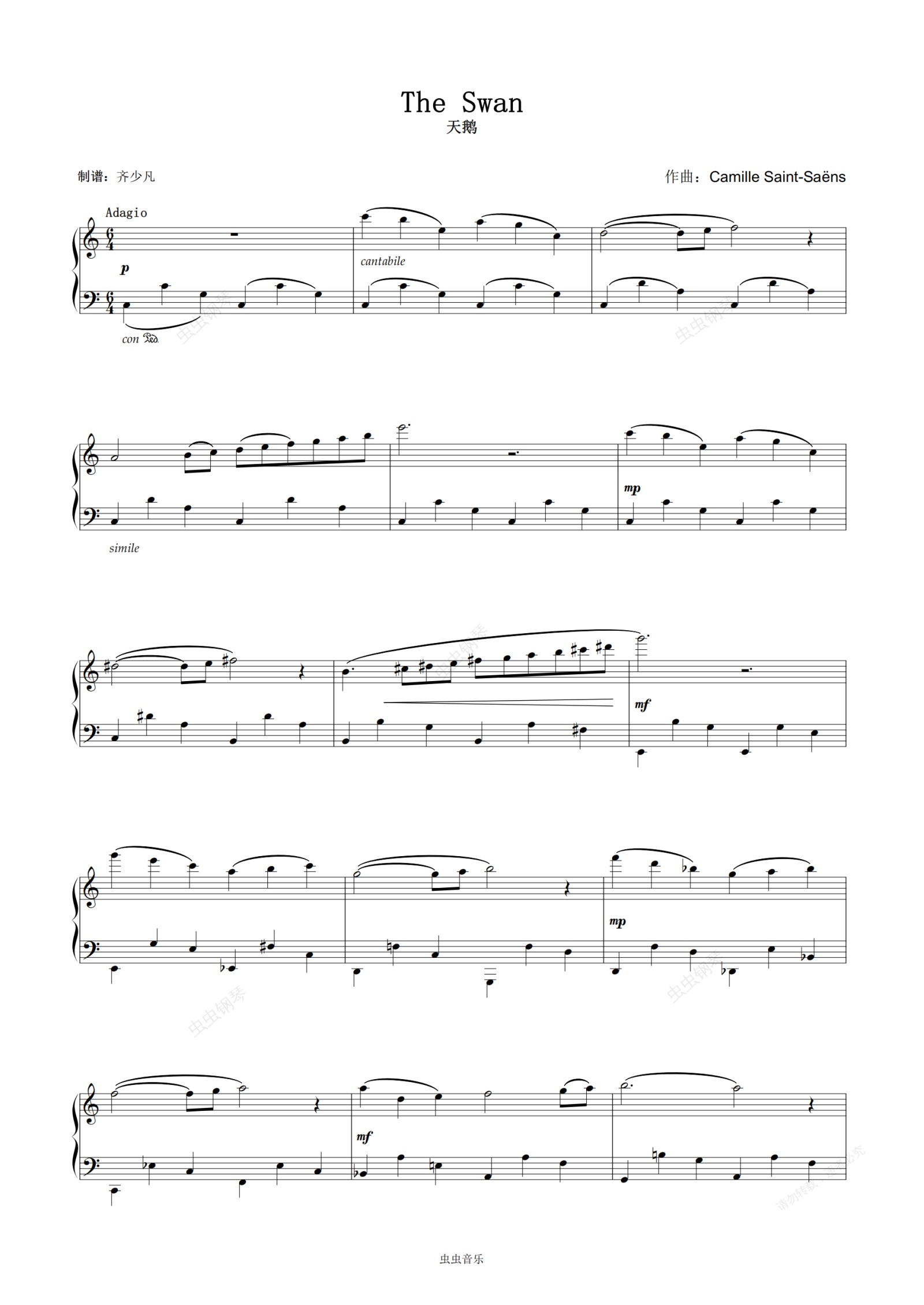 圣桑的动物狂欢节里第十三首,天鹅。简单版本,初学者可以演奏