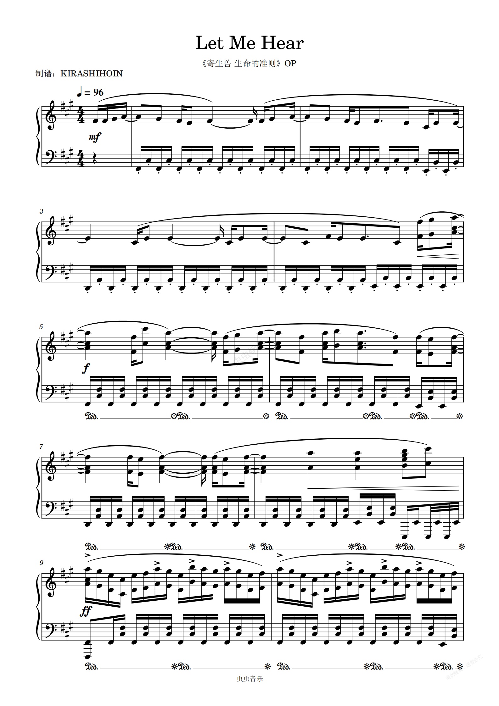 钢琴谱:Let Me Hear(《寄生兽 生命的准则》OP)