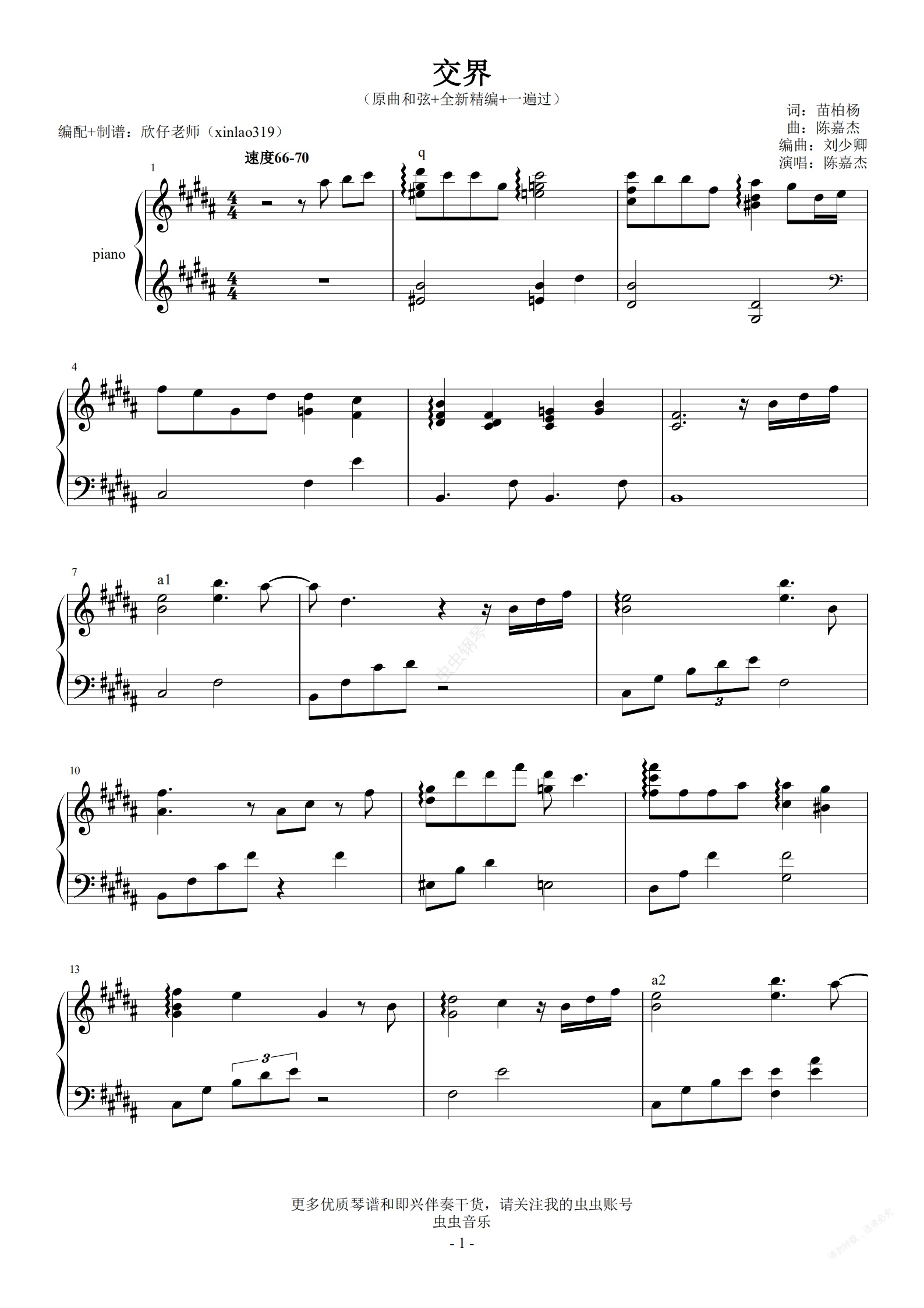 钢琴谱:陈嘉杰-B调《交界》(原曲和弦+全新精编+一遍过)