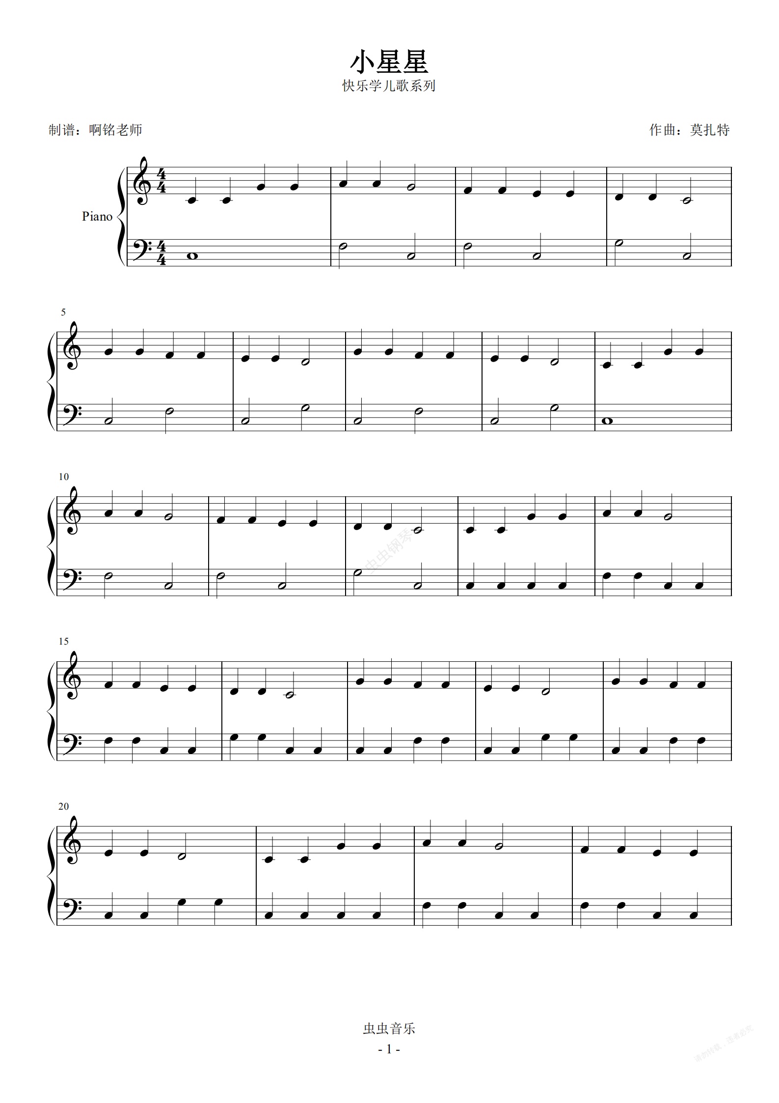 钢琴谱:小星星 小汤3 快乐学儿歌