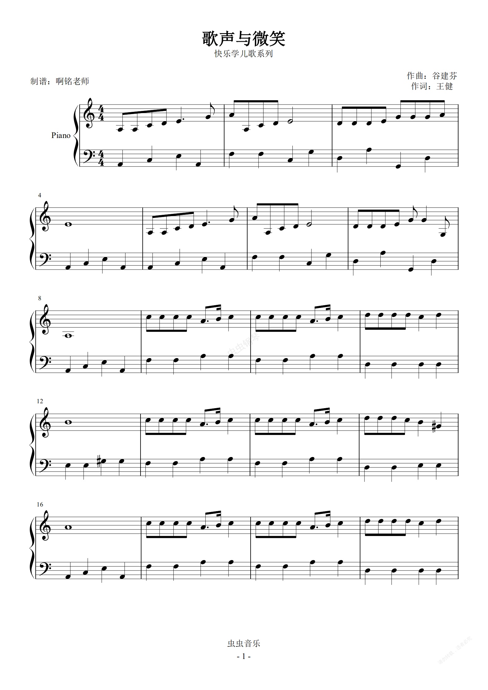 钢琴谱:歌声与微笑 小汤3 快乐学儿歌