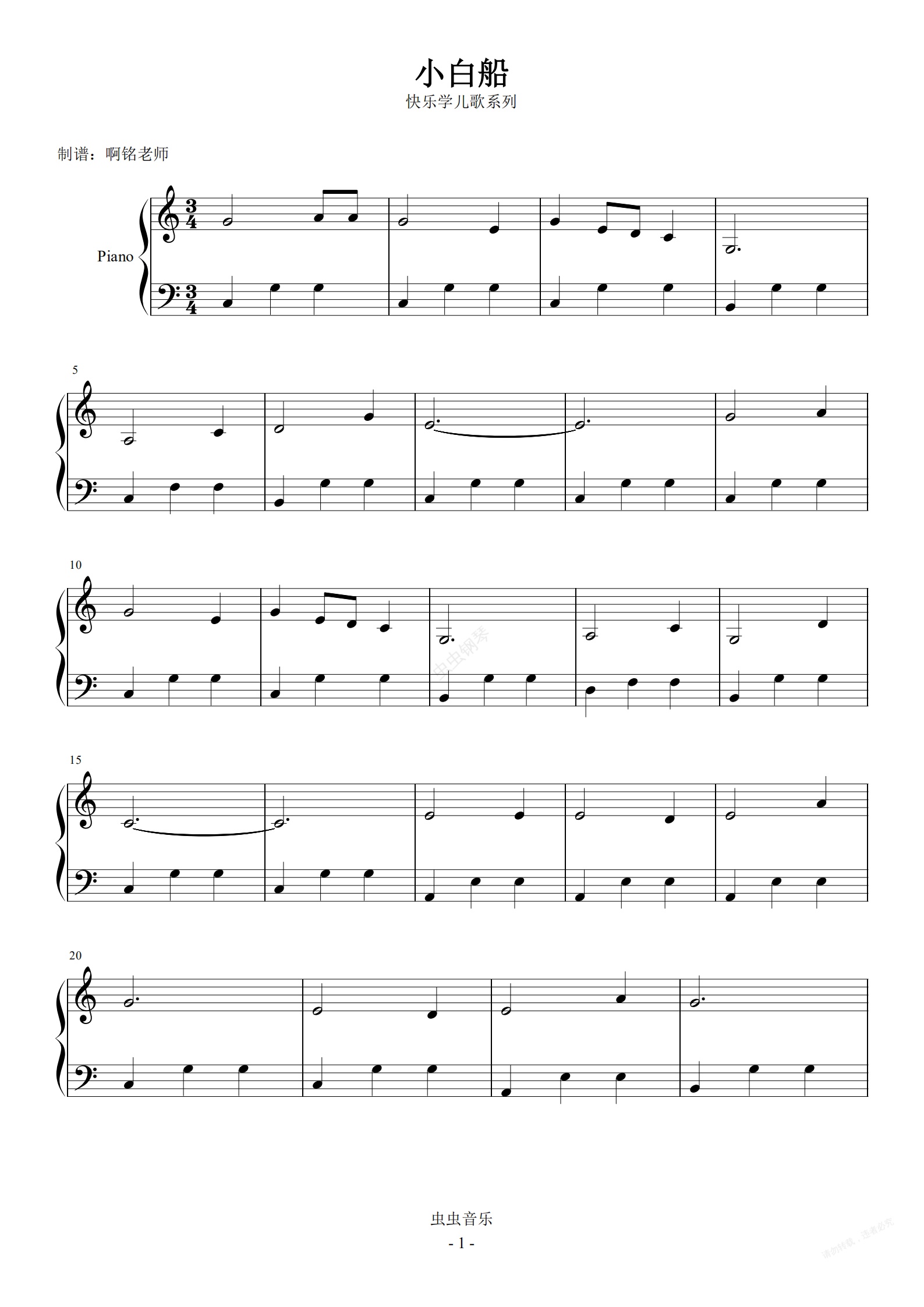 钢琴谱:小白船 小汤3 快乐学儿歌