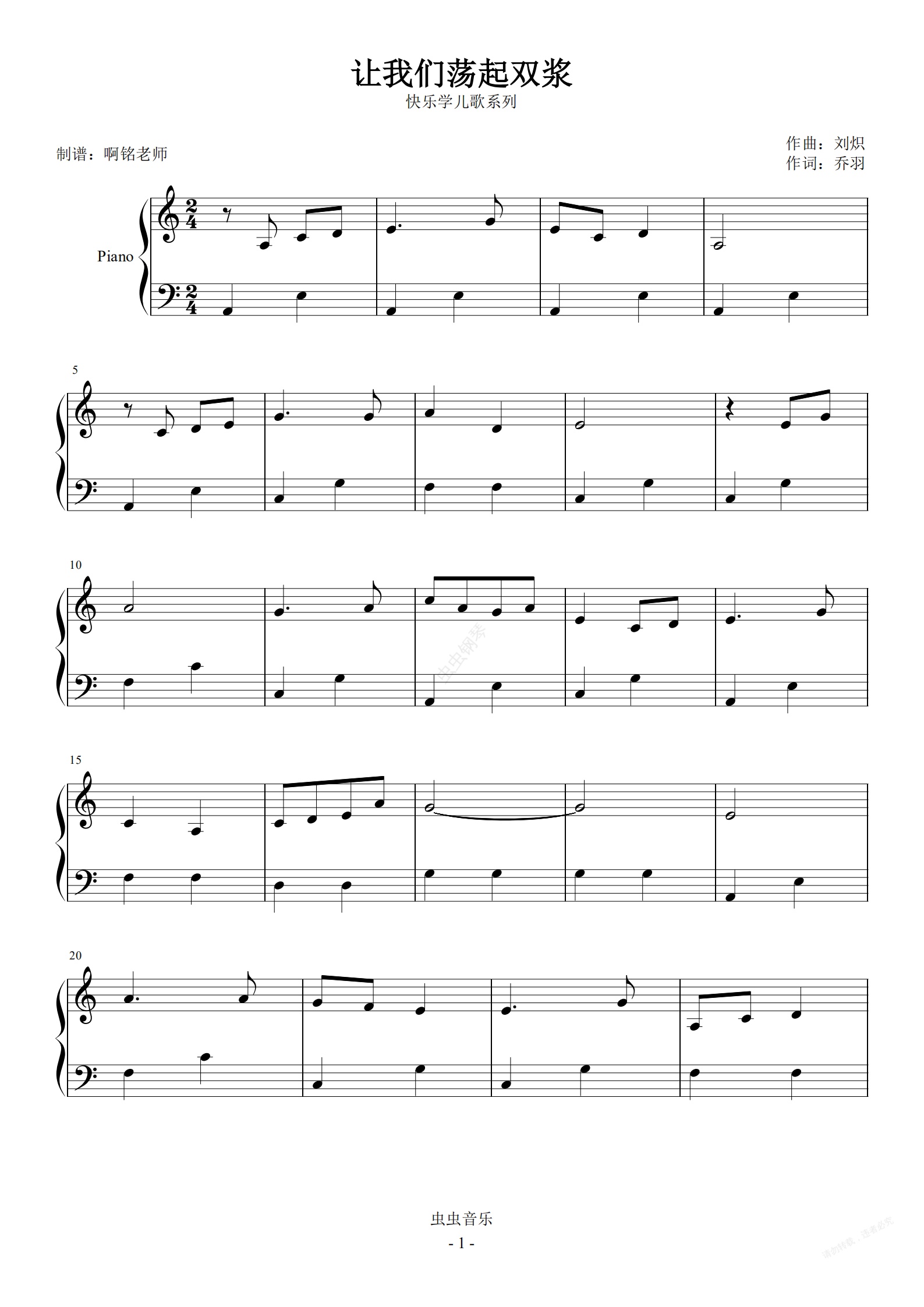 钢琴谱:让我们荡起双桨 小汤3 快乐儿歌