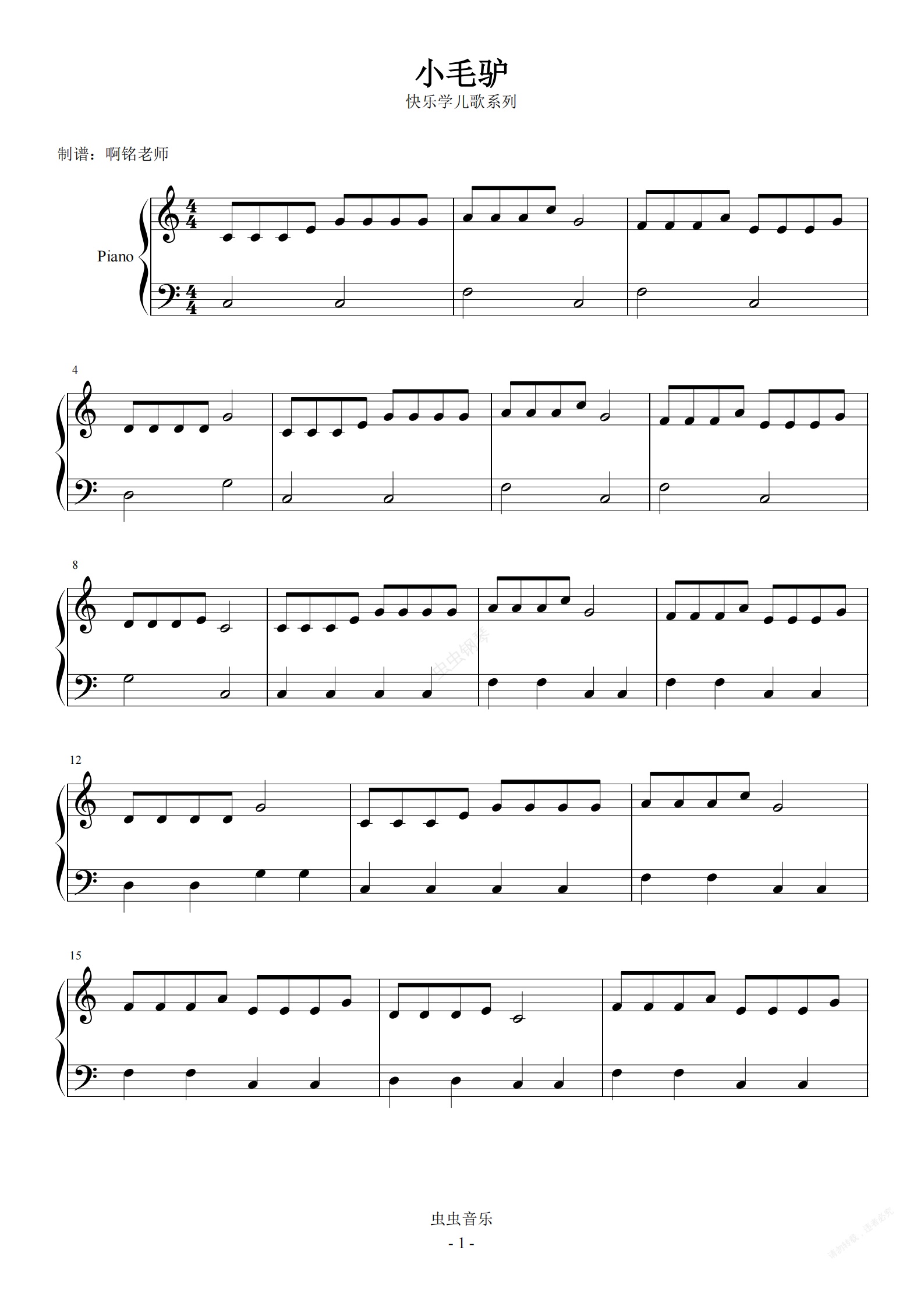 钢琴谱:小毛驴 小汤3 快乐学儿歌